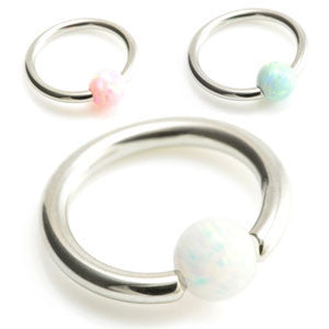 Synthetic Opal Dimp Ball on Steel BCR Gauge: 1.0mm/1.2mmSizes: 6/7/8/10mm Ball Size: 3mm Opal Colour: White / Pink / Green / Blue