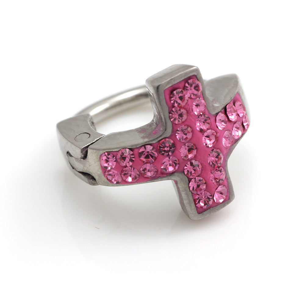 Cast Multi Gem Cross Ring Steel Ring Rose Gems on Pink Resin Size: 1.2mm x 8mm