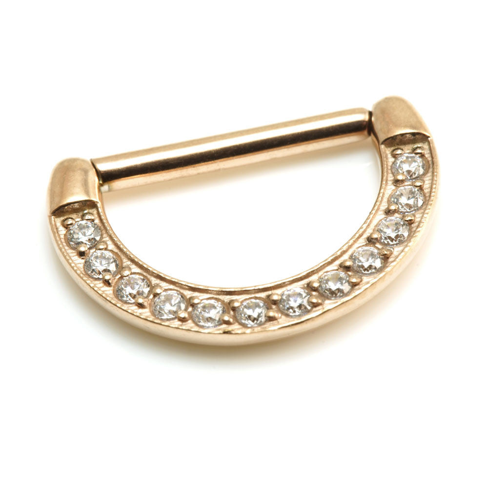 Rose Gold PVD on Cast Steel Nipple Clicker with Pave Crystal Gems Sizes: 1.6mm x 12mm , 14mm
