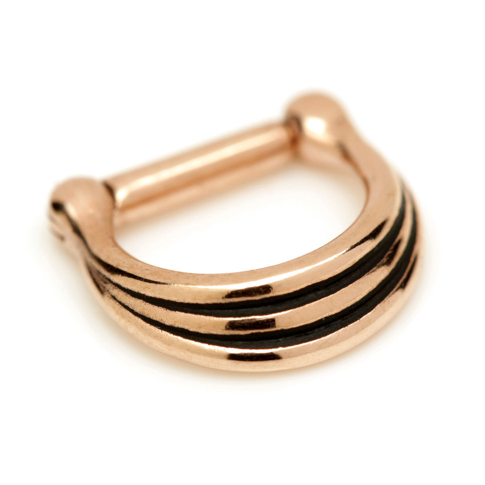 Rose Gold PVD on 316L Steel Hinged Graduated Band Steel Septum Ring Gauges: 1.2mm or 1.6mm Sizes: 6mm or 8mm
