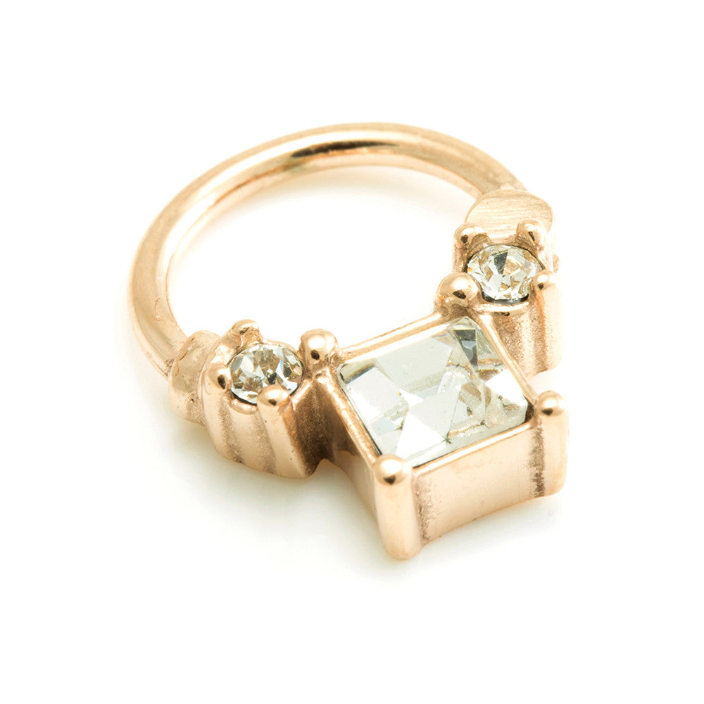 Rose Gold PVD coating on 316L Surgical Steel Square Gem Hinged Ring Gem Colour: Crystal Gauge: 1.2mm Size: 8mm Gem Size: 2x5x2mm
