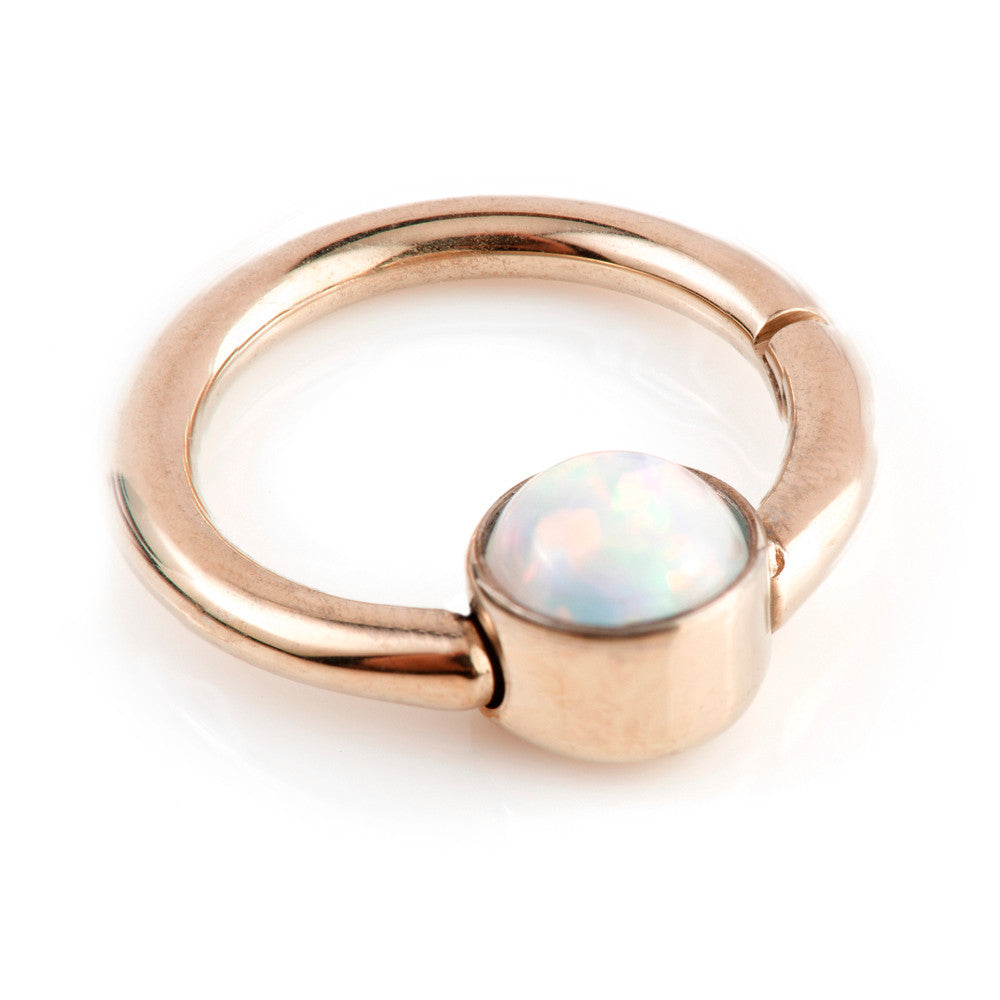 Rose Gold PVD Coating on Titanium Hinge Segment Ring with Rose Gold Titanium Gem Disk White Opal Size: 1.2mm x 8mm Medical Grade Titanium 6Al-4VEli ASTM:F-136