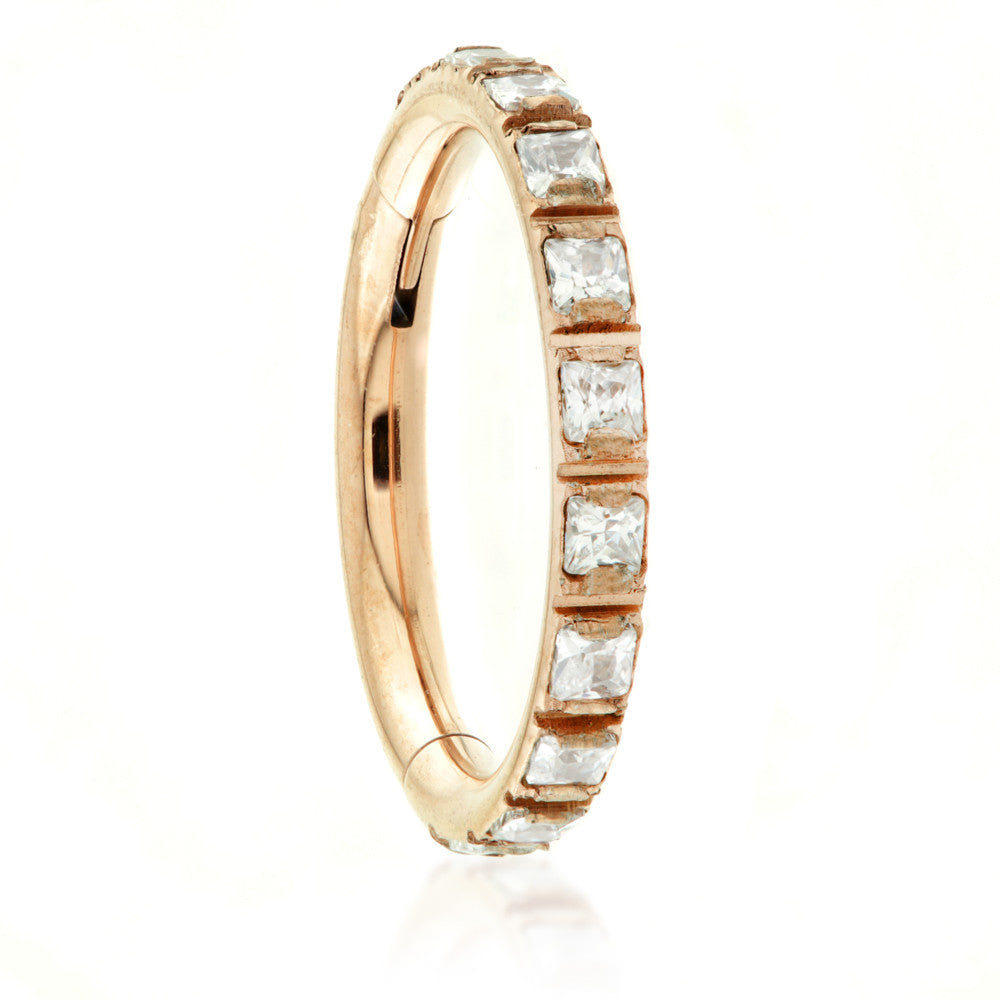 Rose Gold PVD Titanium Square Gem Blaze Set Hinged Micro Ring Gauge: 1.2mm Sizes: 8mm or 10mm Crystal Gems Medical Grade Titanium 6Al-4VEli ASTM:F-136