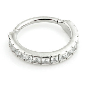 Steel Hinge Flat Jewelled Pavé Conch Ring Gauge: 1.2mm Ring Diameter: 6mm, 10mm, 11mm or 12mm