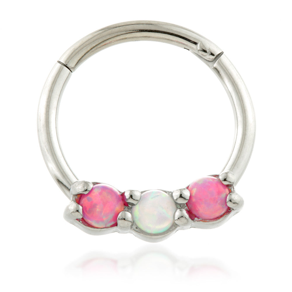 Steel Hinged Segment Ring with 3 Opal Stones
