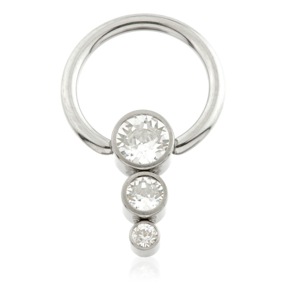 Titanium BCR with Triple Gem Disk Gauge: 1.2mm Size: 8mm Disk Size: 4mm, 3mm & 2mm Swarovski Crystal Gem Stones Medical Grade Titanium 6Al-4VEli ASTM:F-136