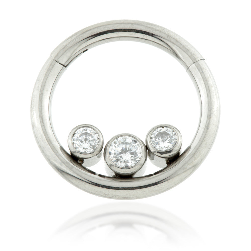 Titanium Front Facing Triple Gem Inside Hinged Ring