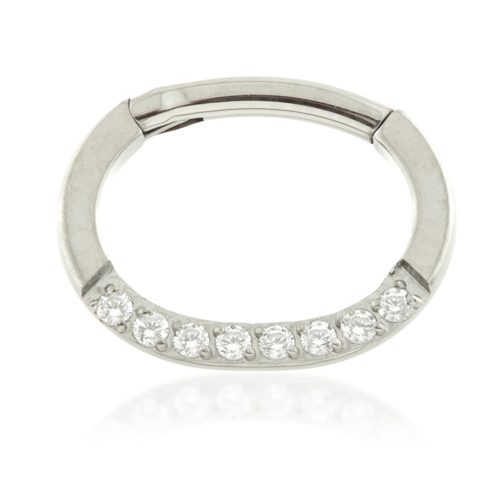 Titanium Oval Front Gem Hinged Ring Gauge: 1.2mm Size: 8mm