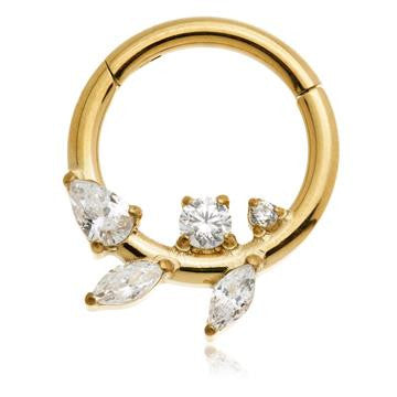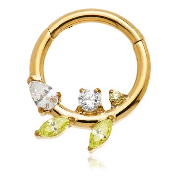 Zircon Gold Ti Couture Multi Gem Leaf Hinged Ring