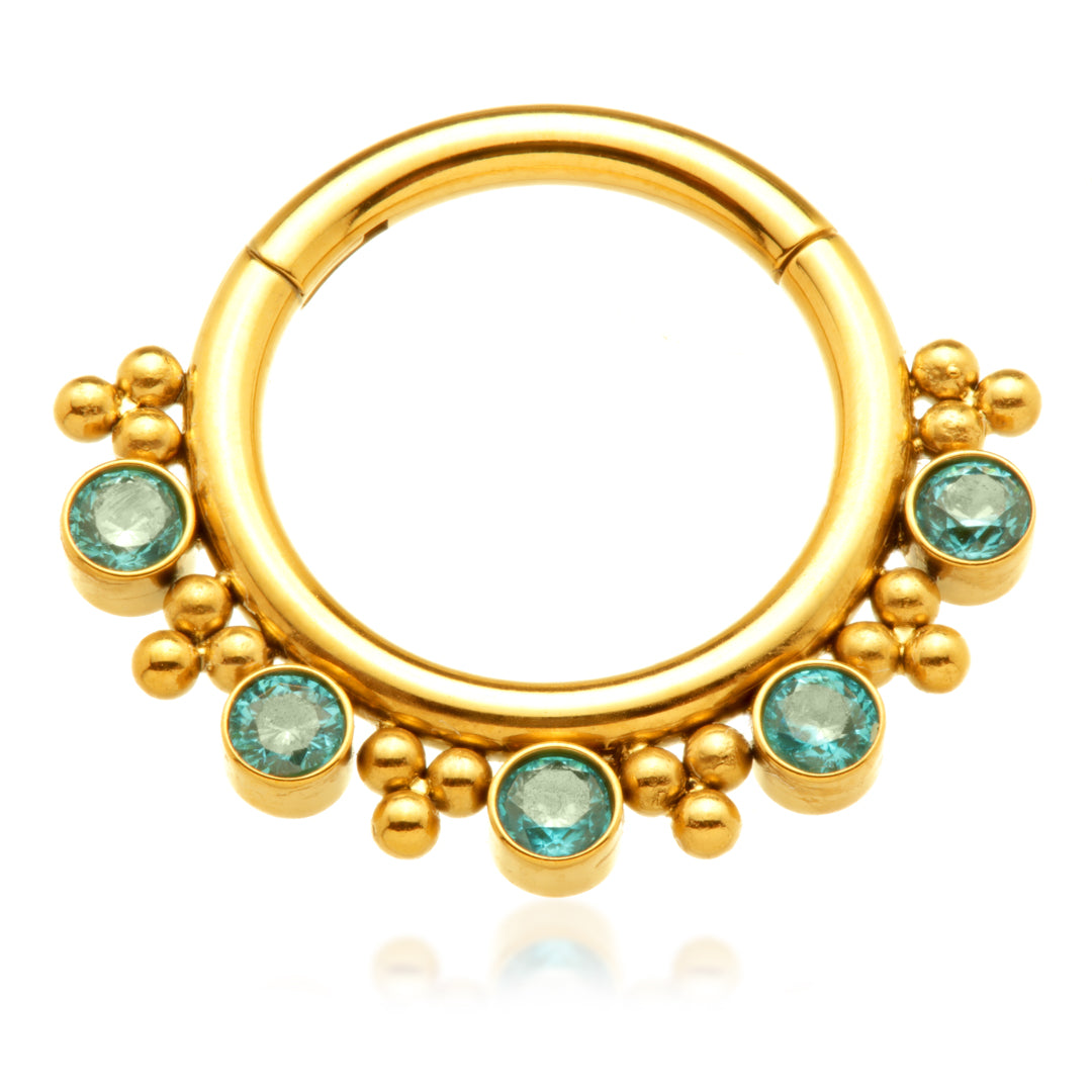 Zircon Gold Ti Jewelled Tribal Bead Cluster Hinged Ring