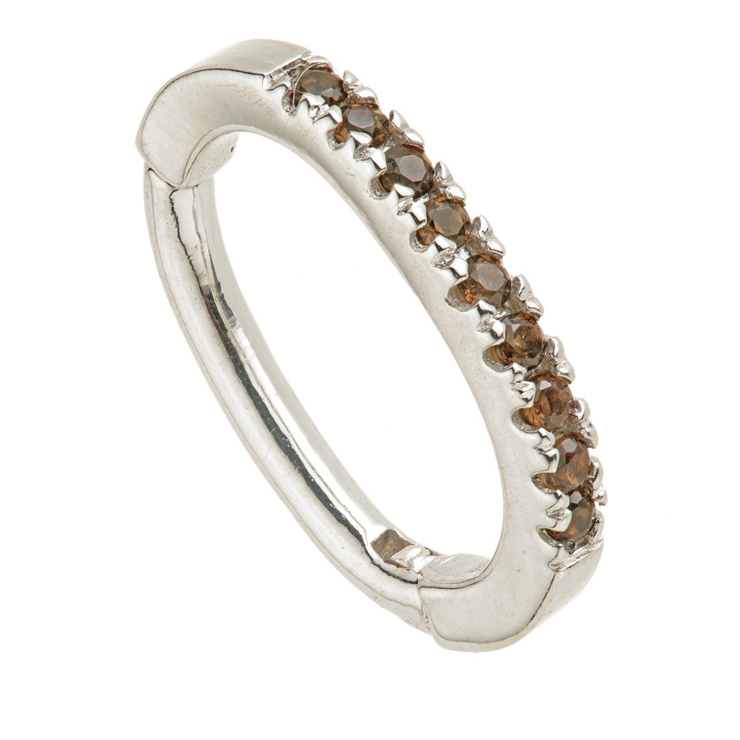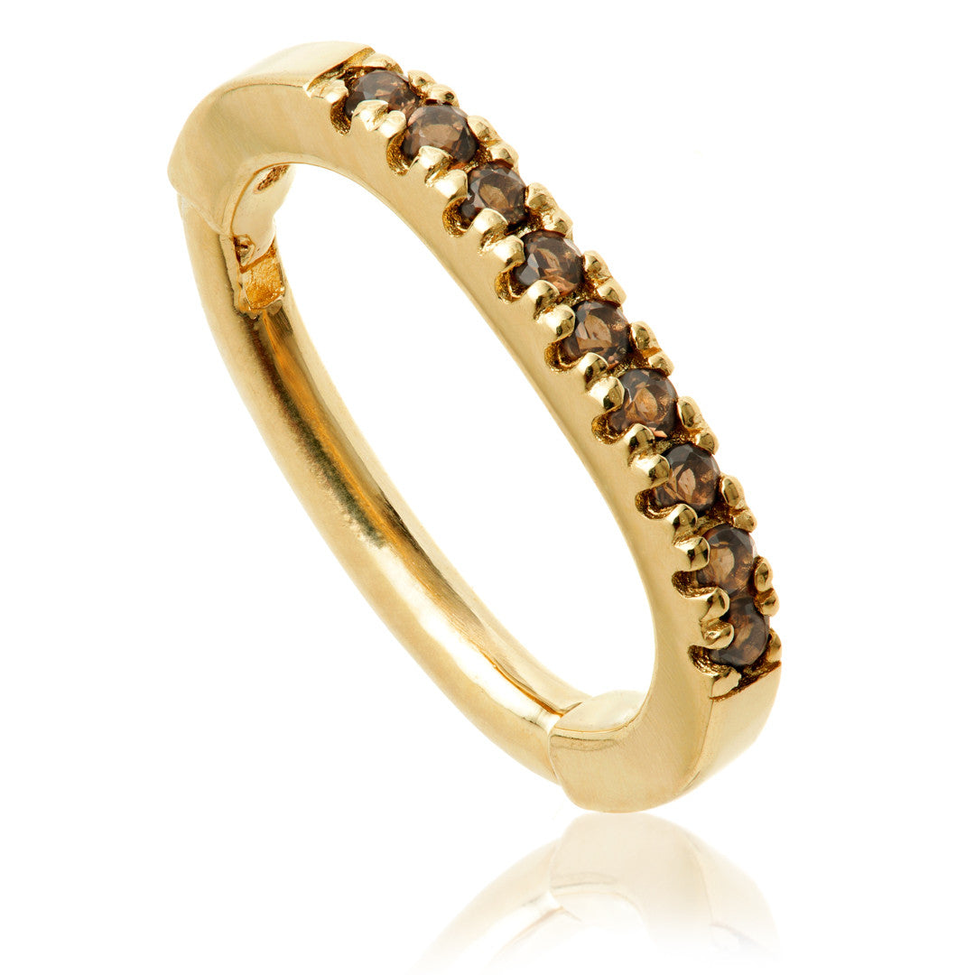 TL - Gold Smokey Quartz Pave Oval Rook Ring Gauge: 1.2mmSize: 9mmGold Colour: Yellow / White 14ct suitable for initial piercing