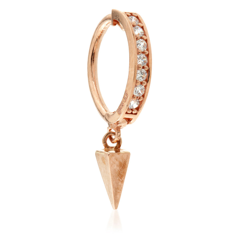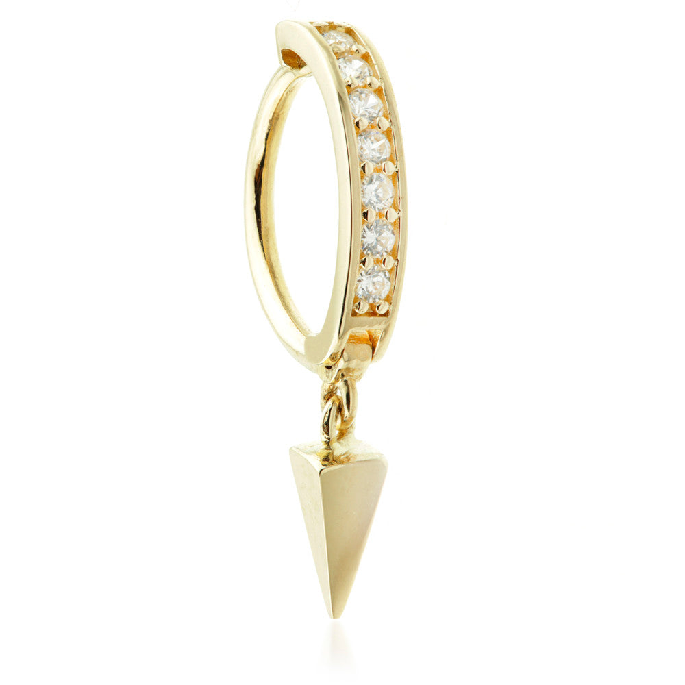 TISH LYON® - Gold Pave Oval Gem Hinge Rook Ring with Hanging Pyramid Pendant 14ct or 9ct Gold Yellow, White or Rose Gold CZ Crystal Gems (1.2mm x 7) Size: 1.2mm x 7.25mm For Rook, Cartilage, Tragus, etc 14ct Suitable for initial piercing Laser Mark on Side of Gems