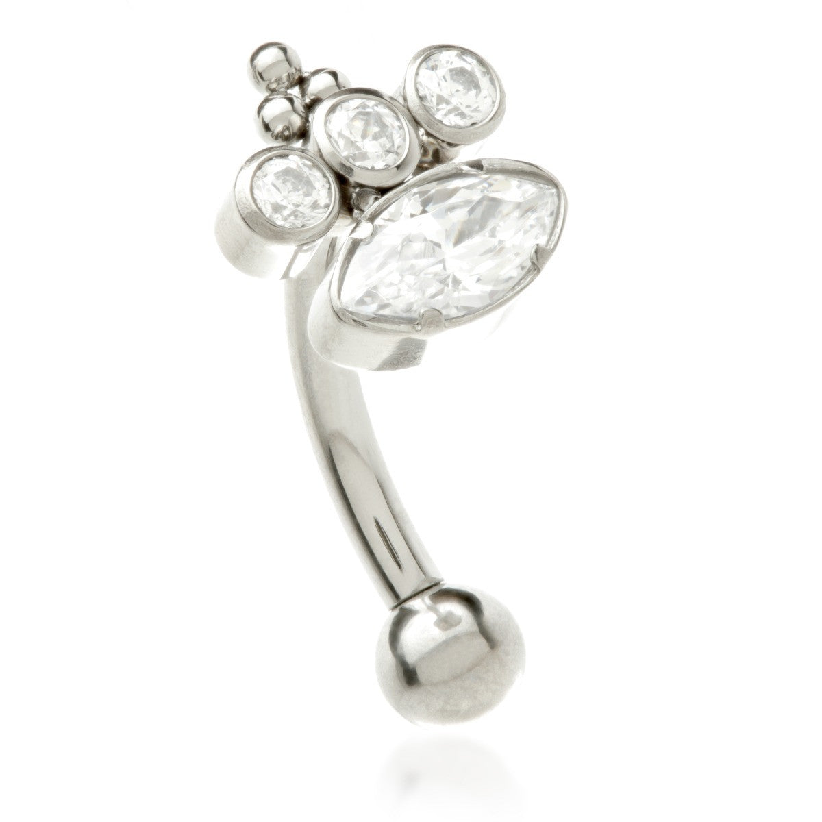Ti Internal Jewelled Marquise with Triple Bezel and Beads Rook/Eyebrow Bar