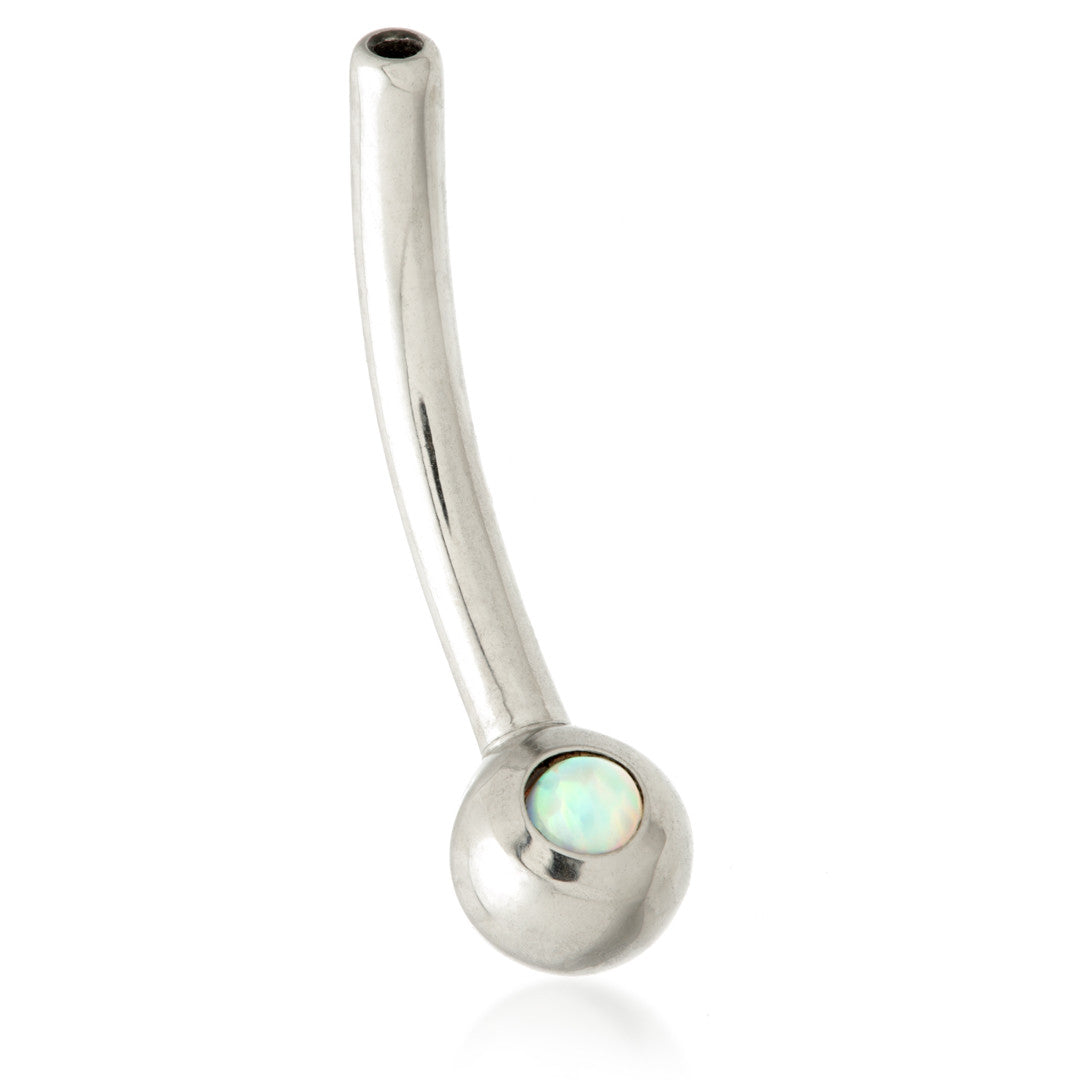 Titanium Threadless Micro Banana Stem with Fixed Opal Ball Gauge: 1.2mm Sizes: 8mm Opal Colour: WT Fixed Ball: 3mm Medical Grade Titanium 6Al-4VEli ASTM:F-136