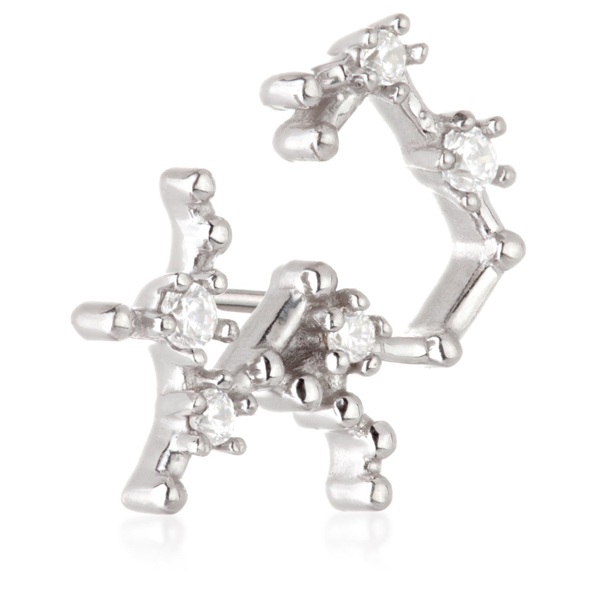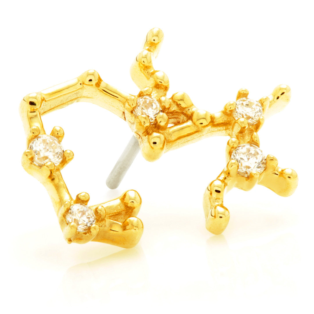 TISH LYON® 14ct Solid Gold Threadless Jewelled Zodiac Sagittarius Constellation Pin Attachment Gauge: 1.0/1.2/1.6mm (0.5mm threadless) Size: 7.5mm x 10mm Gem Colour: CR CZ Gem Stones Suitable for initial piercing Packaged in small grey presentation box