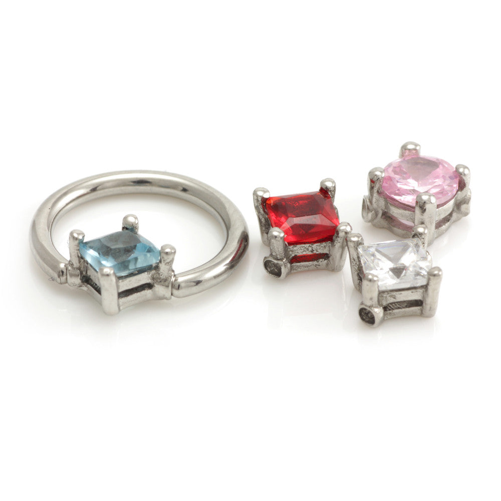 316L Cast Steel Square Gem BCR Attachment (gem attachment only) Gauge: 1.6mm Size: 6mm Gem Colours: Crystal/Aqua/Rose/Red
