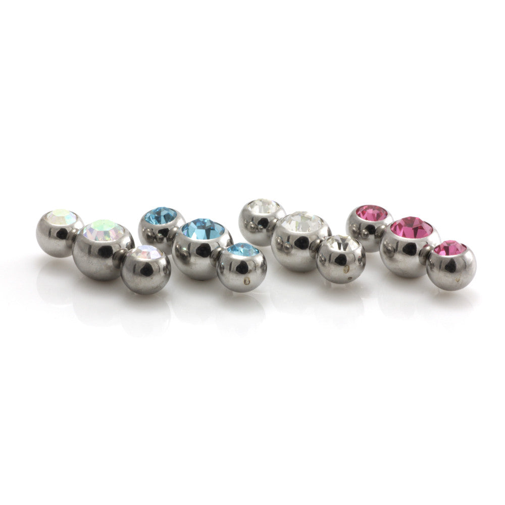 Gem Ball Sizes: 4/5/4mm Gauge: 1.6mm Small and Large Gem Colours: Crystal, Aqua, AB, Rose