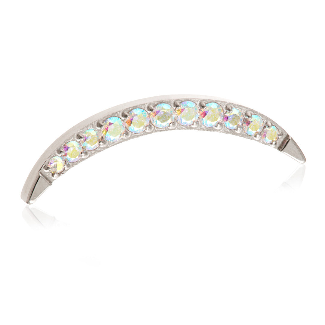 Ti Internal Curved Jewelled Crescent Attachment Gauge: 1.2mm (0.9mm thread) Attachment Size: mm Gem Colour: AB Crystal / Jet Medical Grade Titanium 6Al-4VEli ASTM:F-136