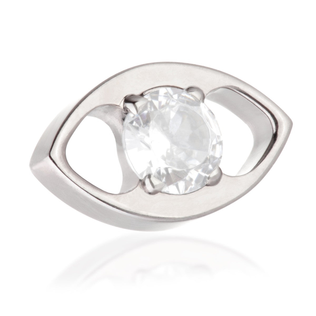 Titanium Internal Jewelled Eye Shaped Attachment Gauge: 1.2mm (0.9mm thread) Attachment Size: 4.5mm x 8mm Gem Size: 3mm Gem Colour: CR CZ Gem Colours Medical Grade Titanium 6Al-4VEli ASTM:F-136