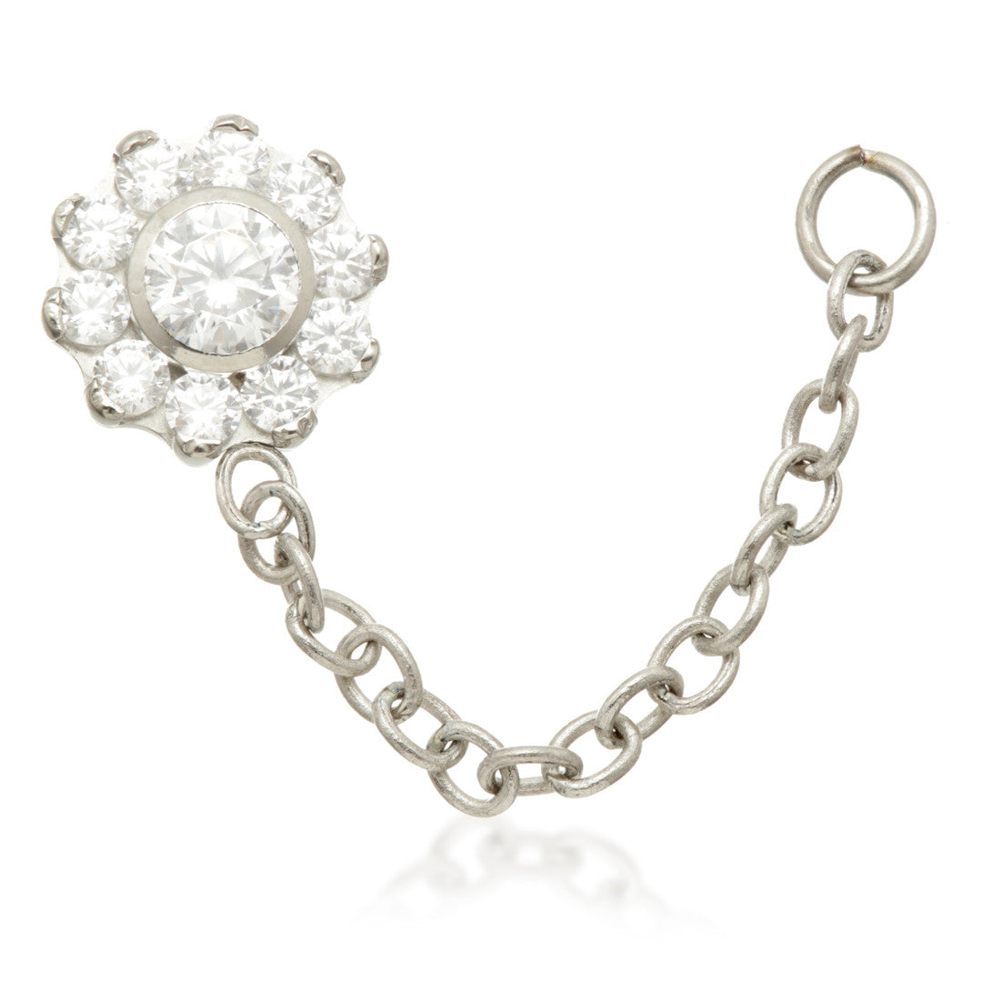 Ti Internal Jewelled Flower Attachment with Hanging Chain for Double Piercing