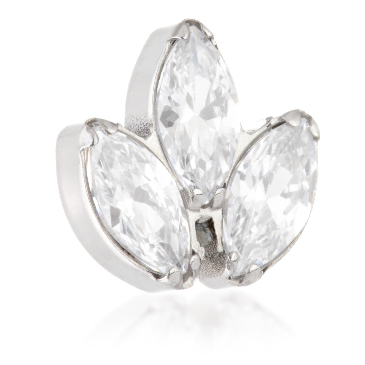Titanium Ti Internal Jewelled Marquise Lotus Attachment Gauge: 1.2mm (0.9mm thread) Medical Grade Titanium 6Al-4VEli ASTM:F-136