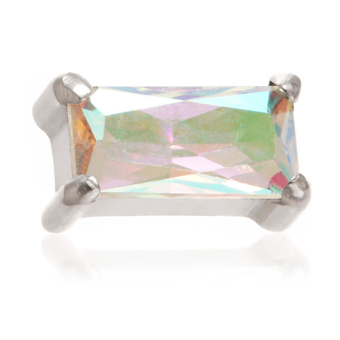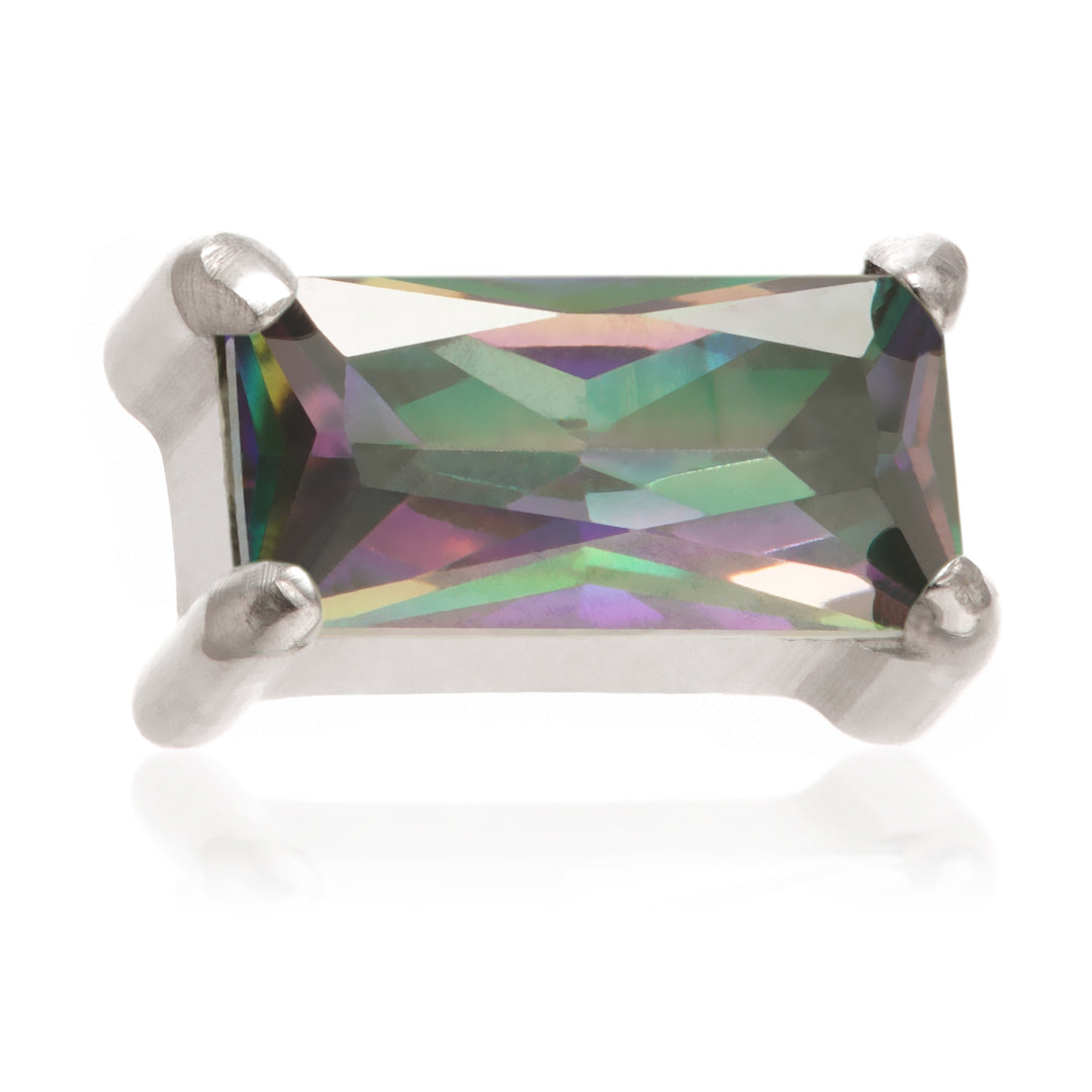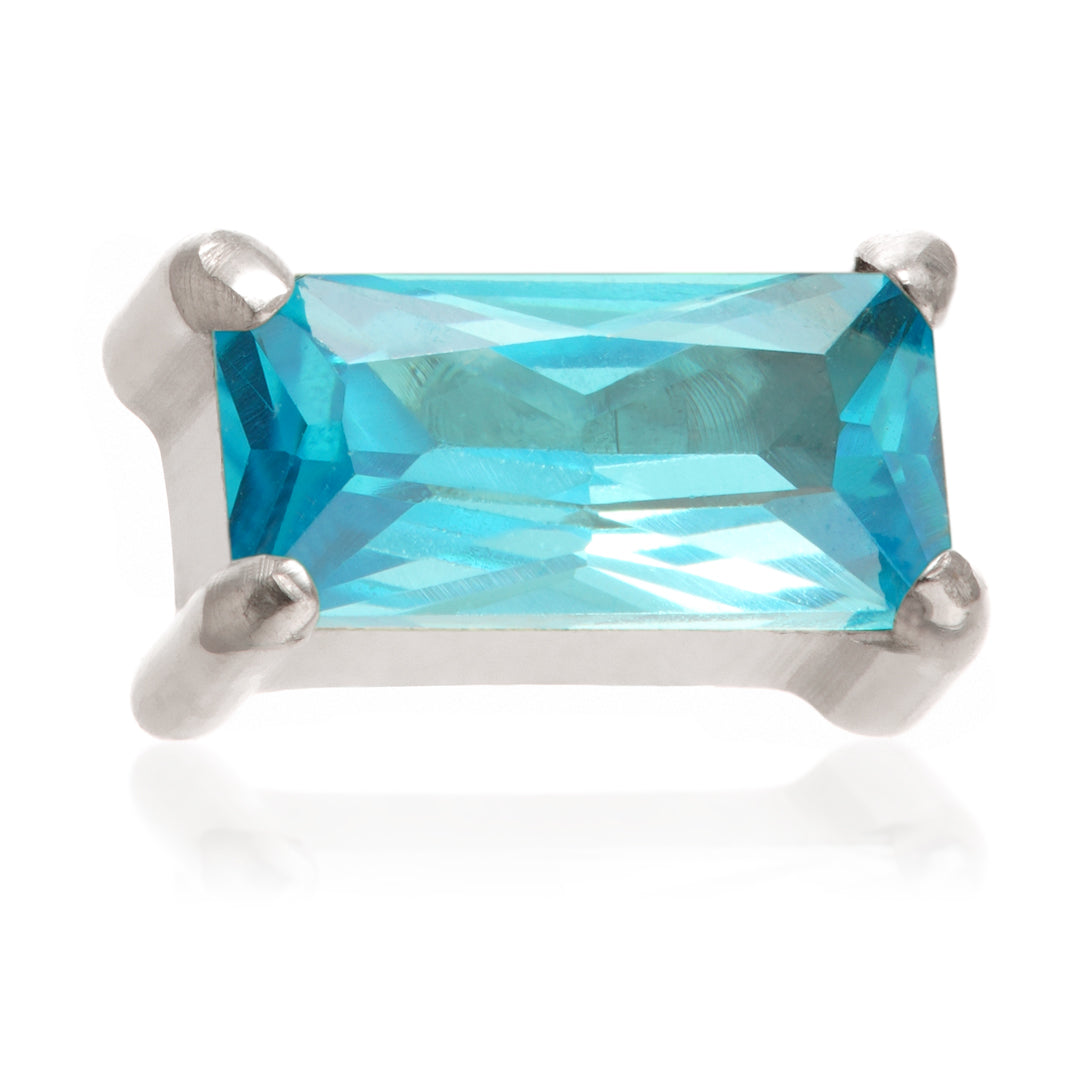 Ti Internal Mini Baguette Gem Attachment Gauge: 1.2mm (0.9mm thread) Attachment Size: mm Gem Colour: Crystal / Aqua / AB / Emerald / Light Rose / Vitrail Medium / Yellow / Siam / Capri Blue Medical Grade Titanium 6Al-4VEli ASTM:F-136