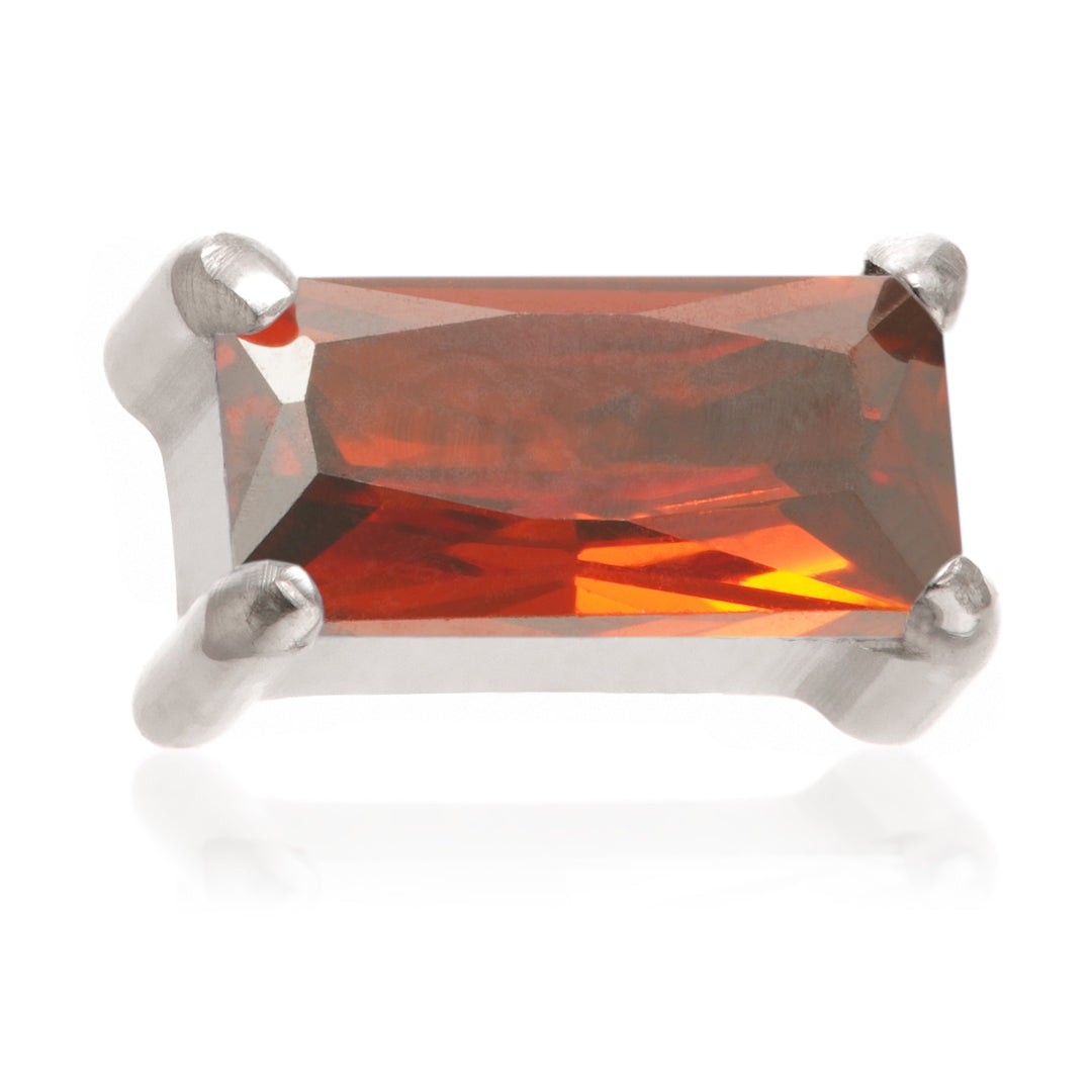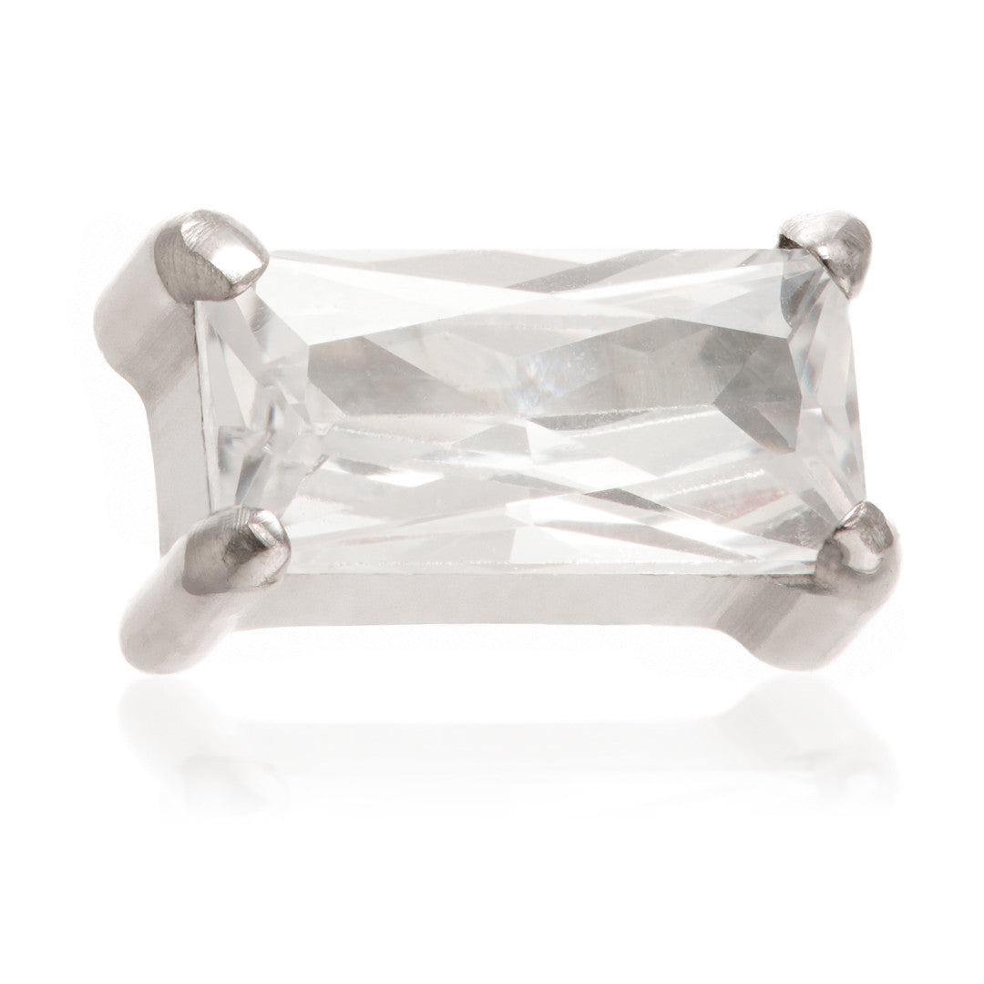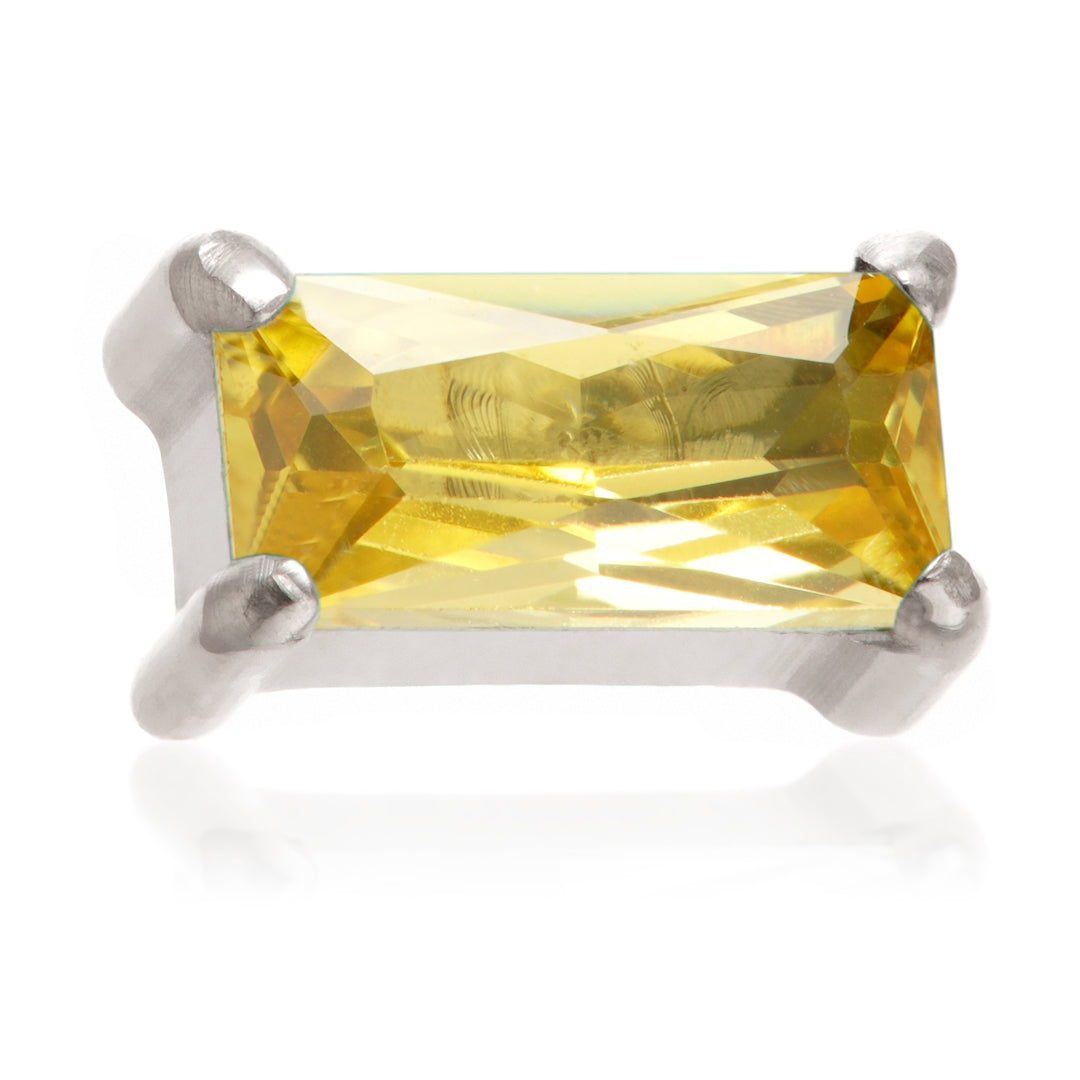 Ti Internal Mini Baguette Gem Attachment Gauge: 1.2mm (0.9mm thread) Attachment Size: mm Gem Colour: Crystal / Aqua / AB / Emerald / Light Rose / Vitrail Medium / Yellow / Siam / Capri Blue Medical Grade Titanium 6Al-4VEli ASTM:F-136