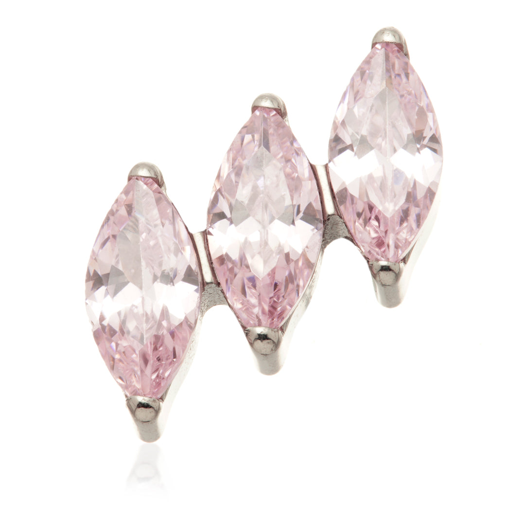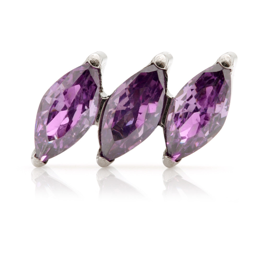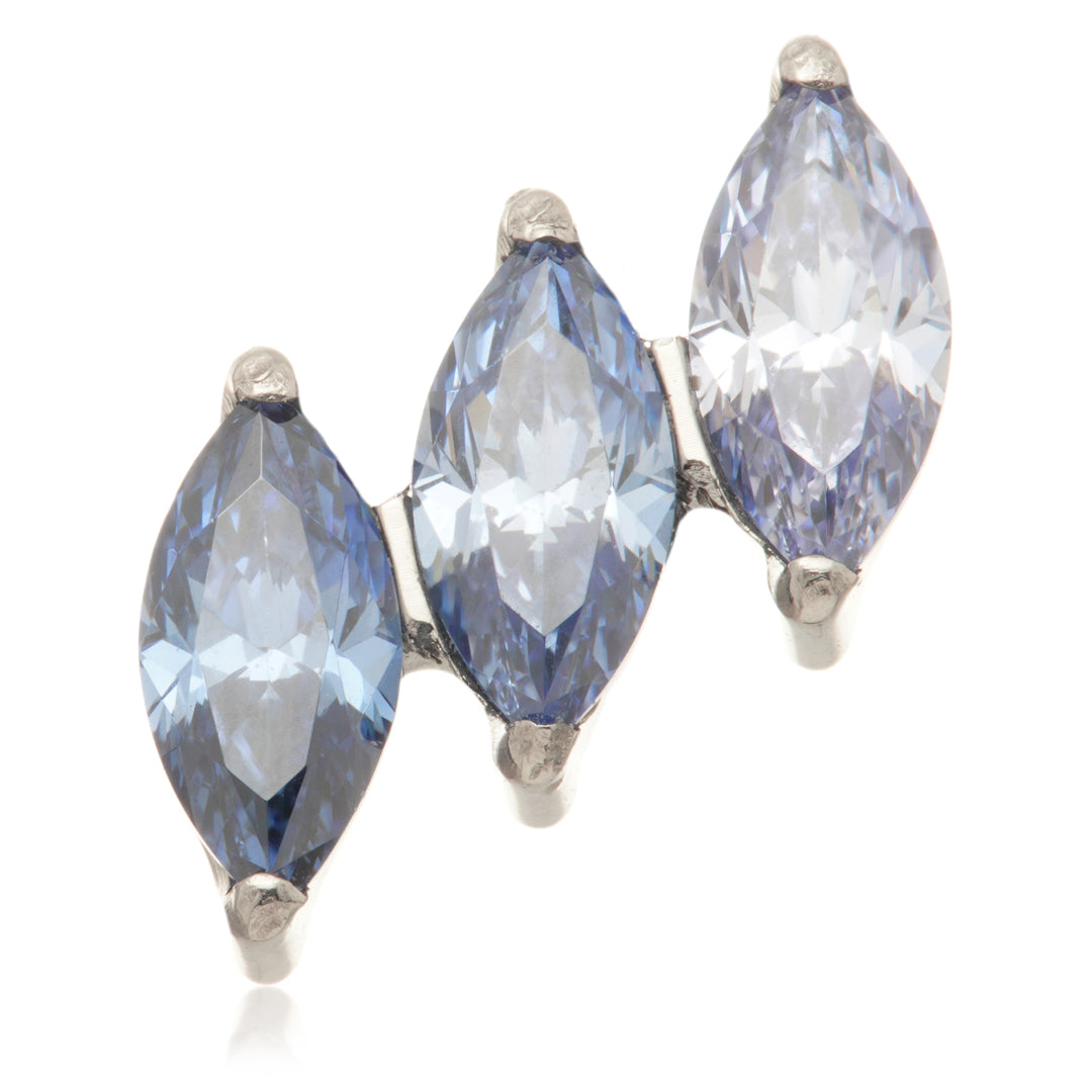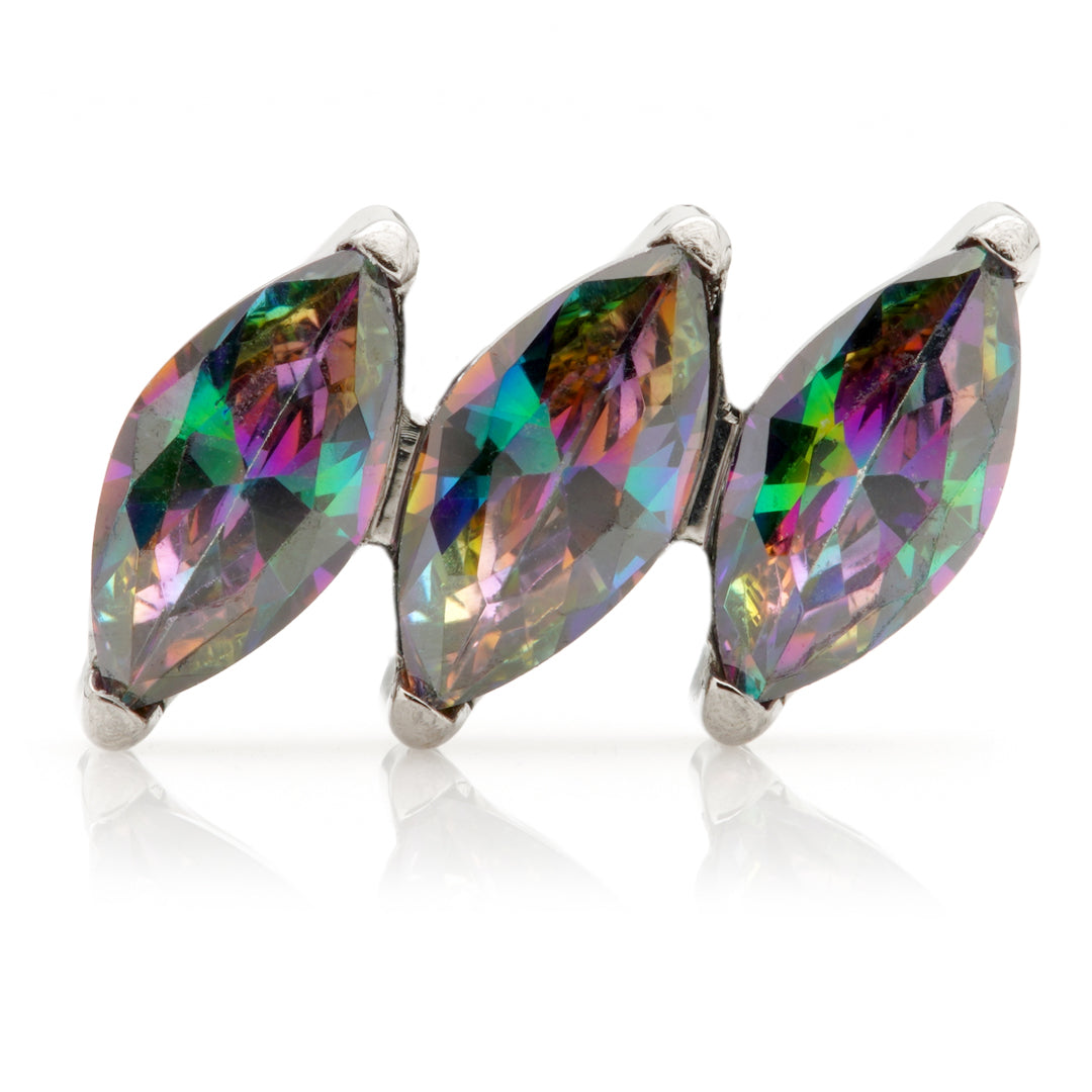Titanium Internal Triple Tilted Marquise Attachment Gauge: 1.2mm (0.9mm thread) Attachment Size: 7mm Gem Colour: AM/CR/EM/GA/JT/LR/TZ/VM Medical Grade Titanium 6Al-4VEli ASTM:F-136