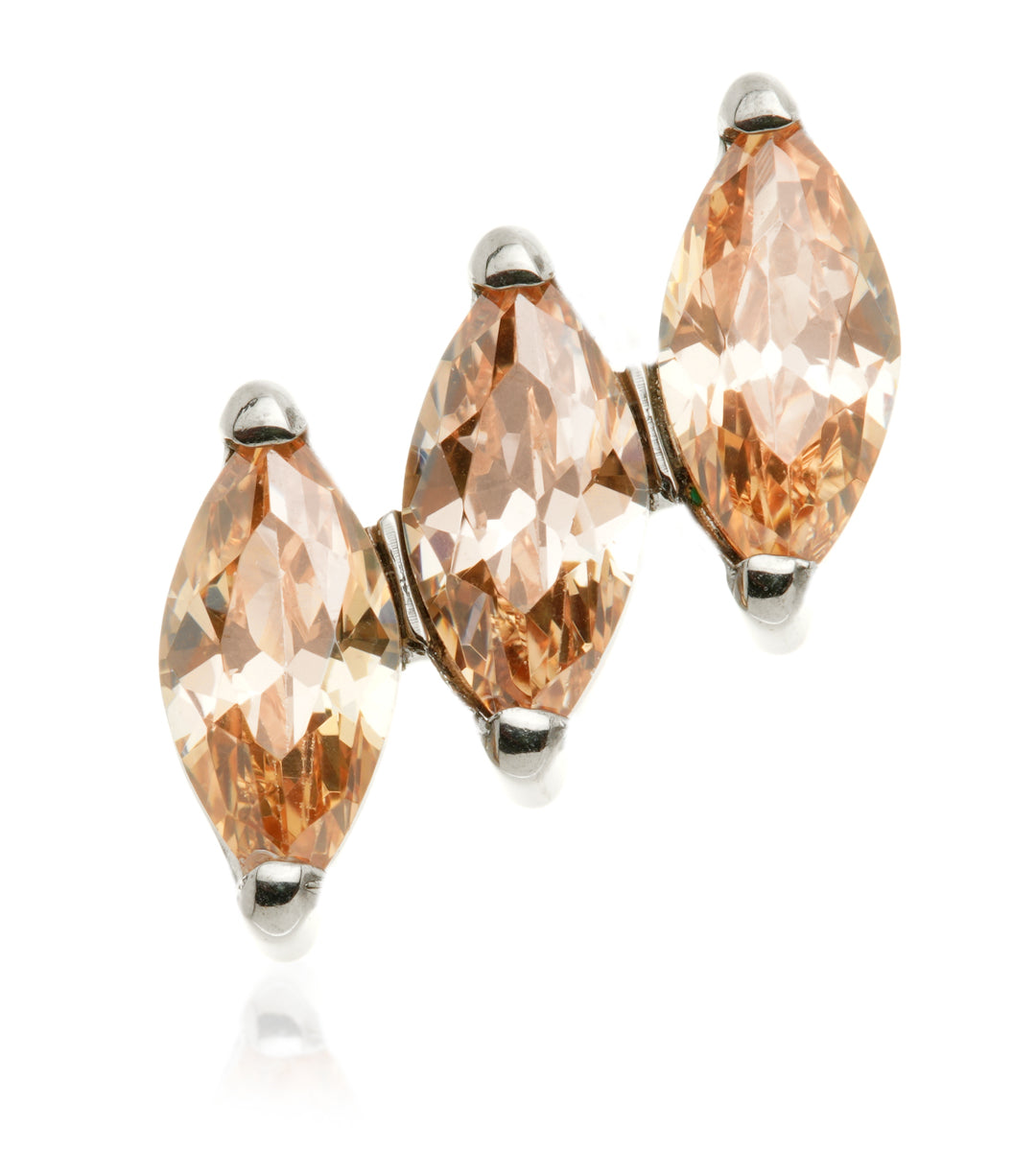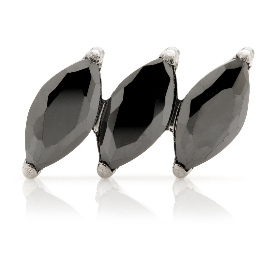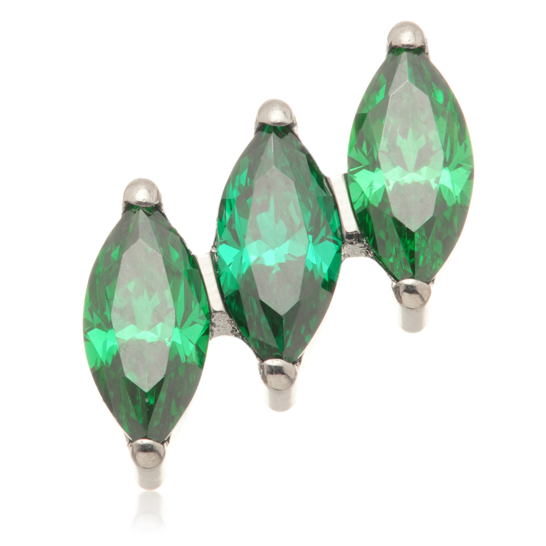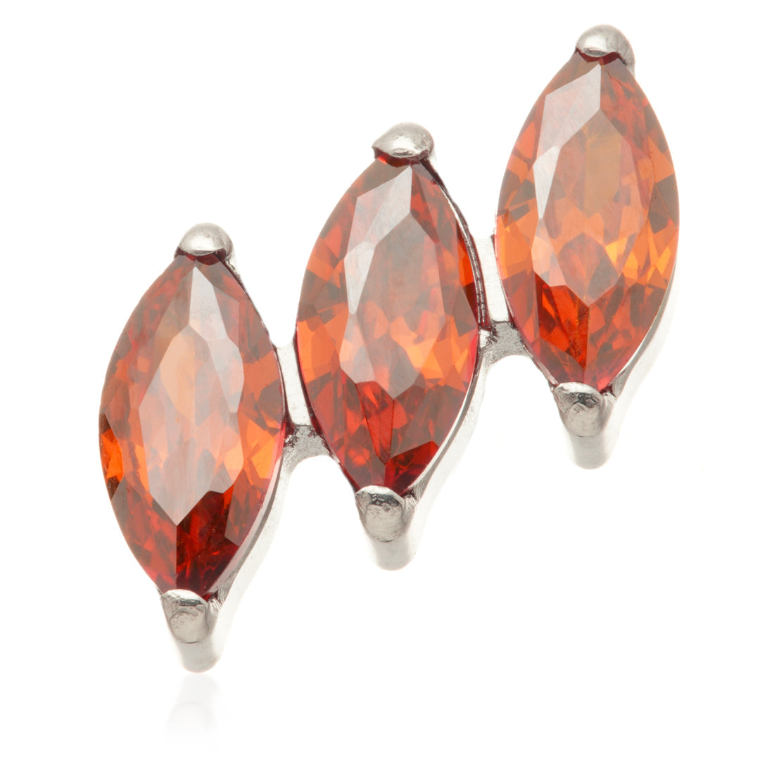 Titanium Internal Triple Tilted Marquise Attachment Gauge: 1.2mm (0.9mm thread) Attachment Size: 7mm Gem Colour: AM/CR/EM/GA/JT/LR/TZ/VM Medical Grade Titanium 6Al-4VEli ASTM:F-136