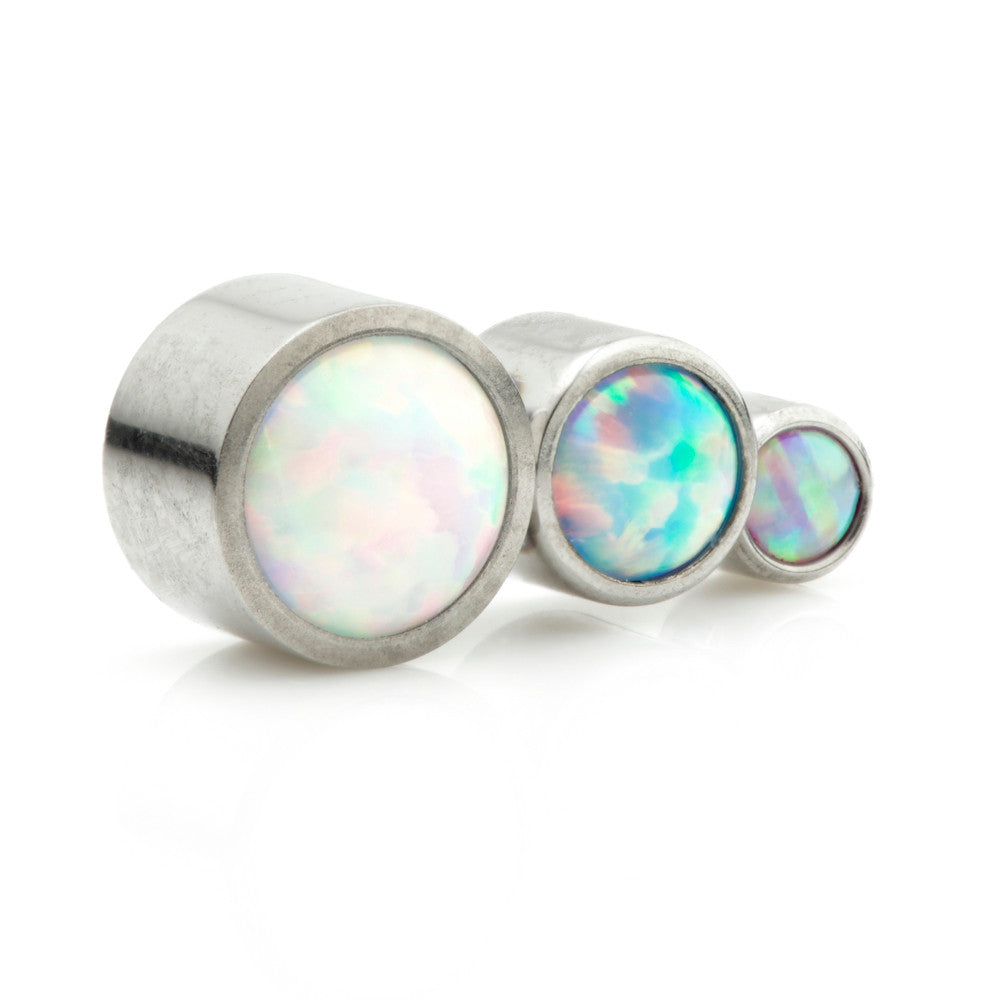 Titanium White/Blue/Pink Opal Tear Drop Gauge 1.2mm with 0.9mm thread Gem Size: White Opal 4mm / Blue Opal 2.5mm / Pink Opal 2mm Titanium Colours Available Left or Right Side Medical Grade Titanium 6Al-4VEli ASTM:F-136