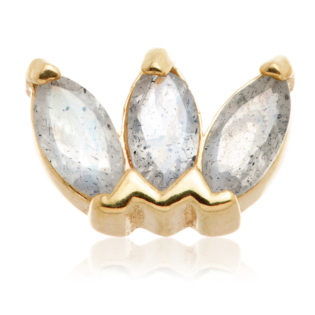 TISH LYON TL - 14ct Gold Internal Triple Marquise Labradorite Attachment Gold Colour: Yellow or WhiteGem Stone: Labradorite Suitable for initial piercing