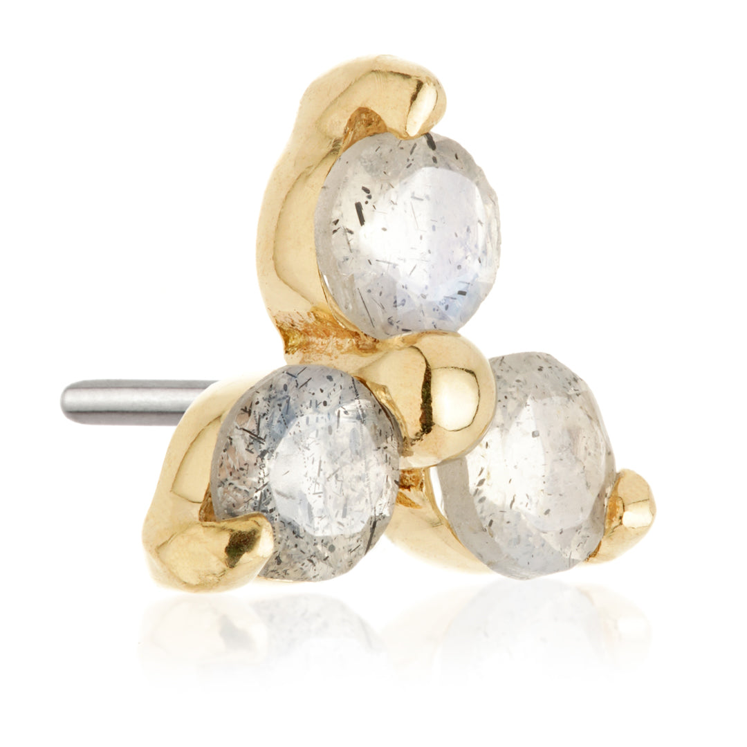 TISH LYON TL - 14ct Gold Threadless Trinity Labradorite Pin Attachment Gold Colour: Yellow or WhiteGem Stone: Labradorite316L Surgical Steel Pin Suitable for initial piercing