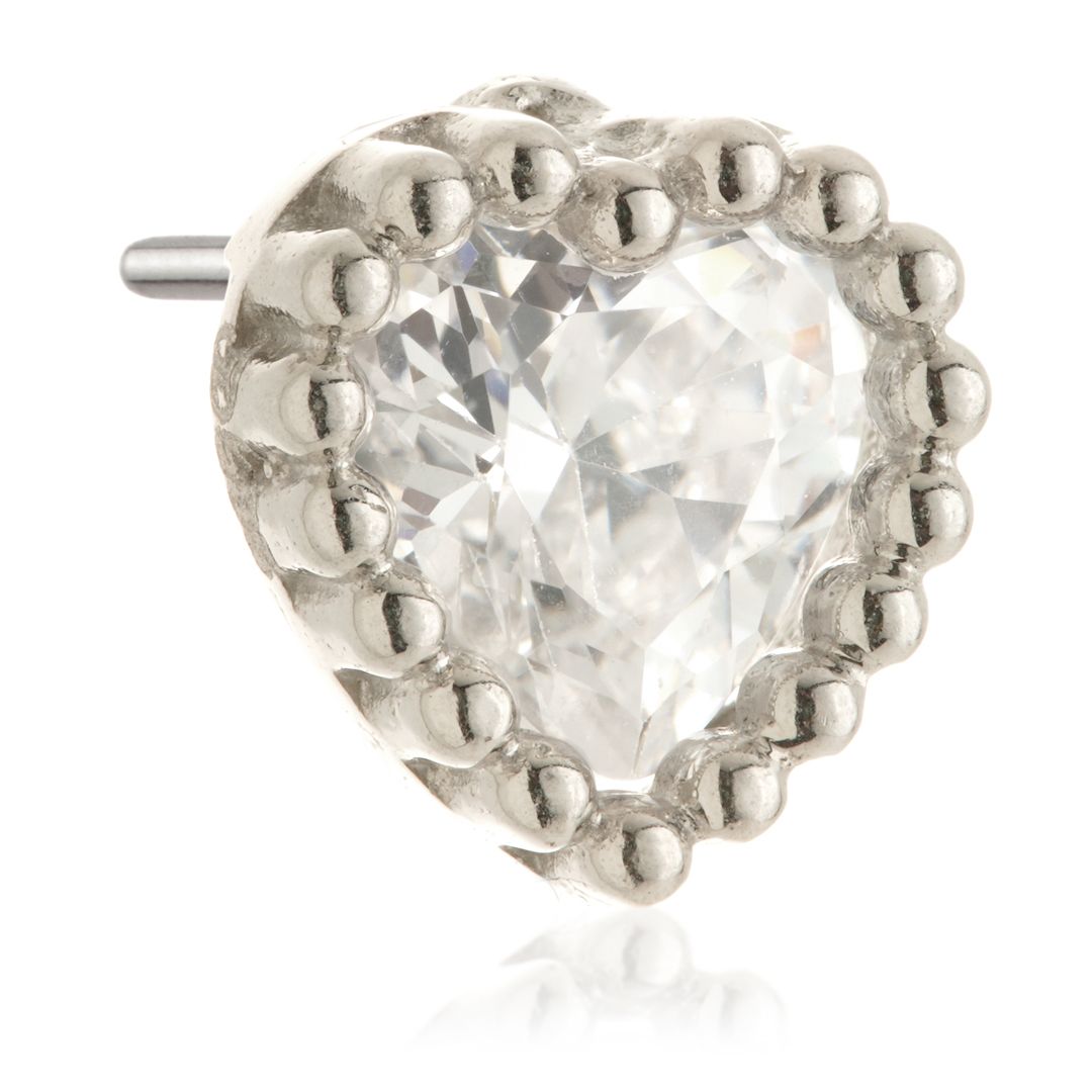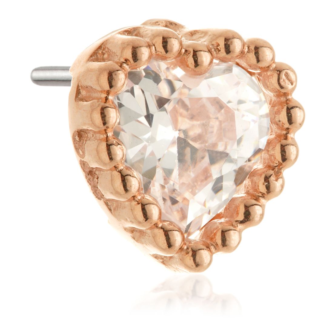 TISH LYON® 14ct Threadless Beaded Crown Set Heart Gem Attachment Attachment Size: 5mm Gold Colours: R / W / Y Gem Colour: CR CZ Gem Stones Suitable for initial piercing [only for 14ct and 18ct]