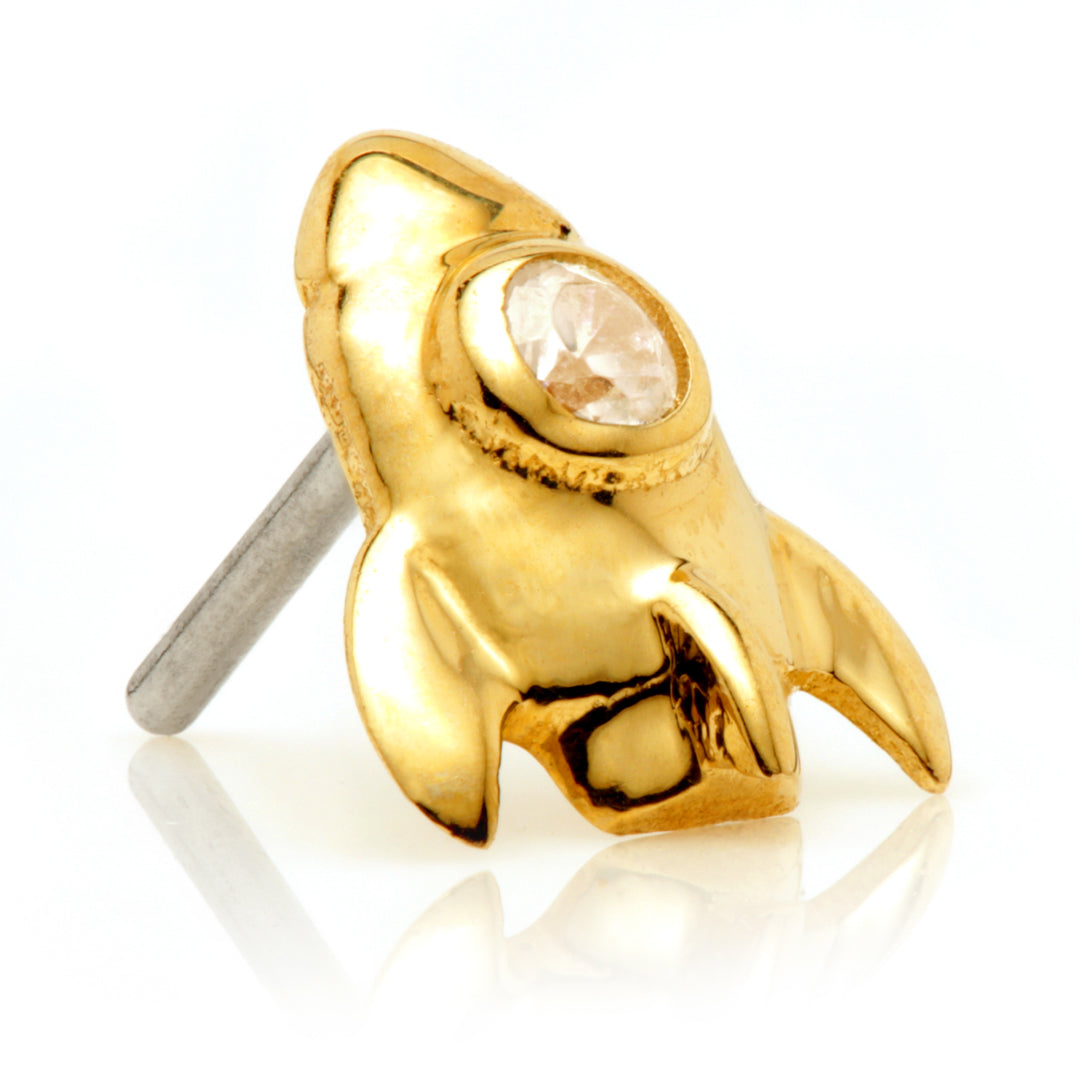 TL - 14ct Threadless Gold Jewelled Spaceship Pin Attachment