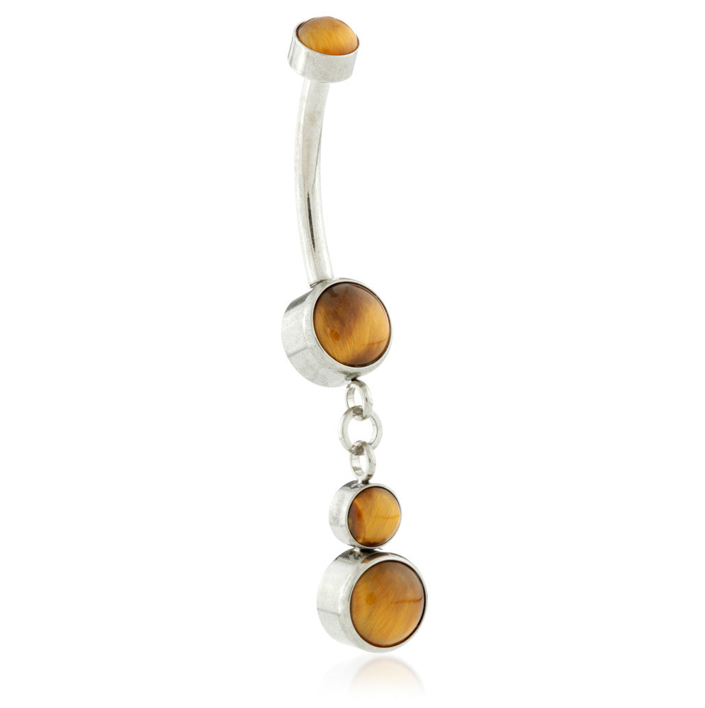 Internal Ti Double Disk Navel With Tiger Eye Hanging Stones