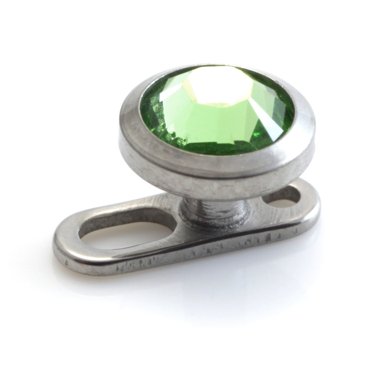 Internal Titanium Gem Disk on Ti Large Hole Dermal Anchors Fits Gauge: 1.6mm (thread on Disk 1.2mm) Anchor Height: 1.6mm x 2mm / 2.5mm Gem Disk Size: 3/4/5/6mm Gem Colours: Crystal, AB, Aqua, BZ, Rose, Peridot, Fuchsia, Lt Siam, Lt Rose, Lt Amethyst, Amethyst, Capri Blue, Sapphire, Emerald, Jet