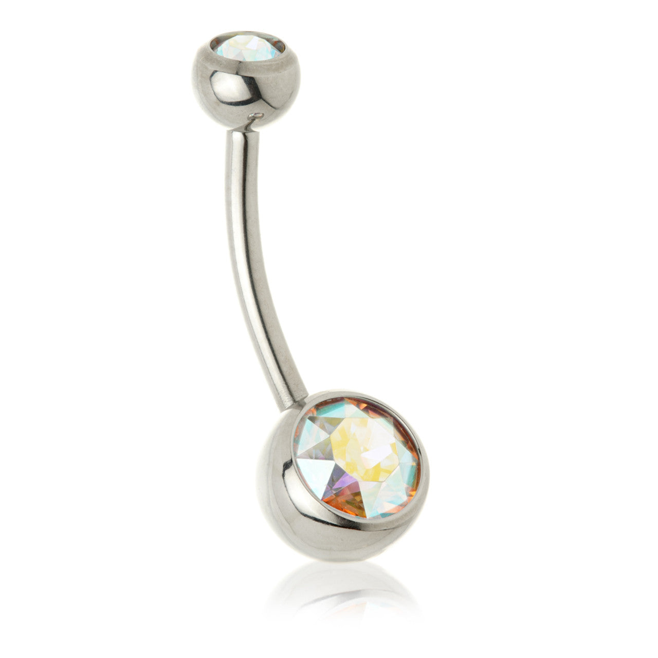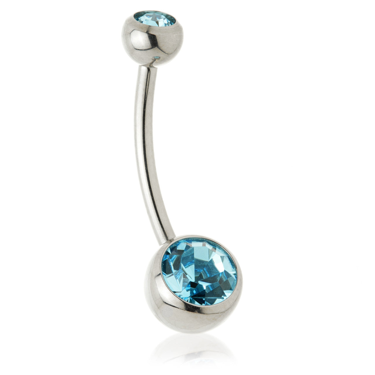 Perryman Titanium Internal Double Jewelled Navel Bar With 0.9mm Thread - UK Made