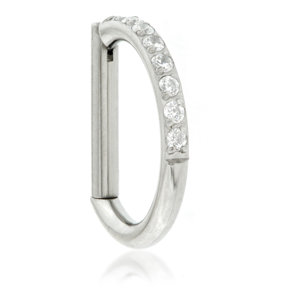 Titanium Half Pave Gem D Shape Hinged Ring Gauge: 1.2mm Sizes: 8/10mm Gem Colours: CR CZ Gem Stones Medical Grade Titanium 6Al-4VEli ASTM:F-136