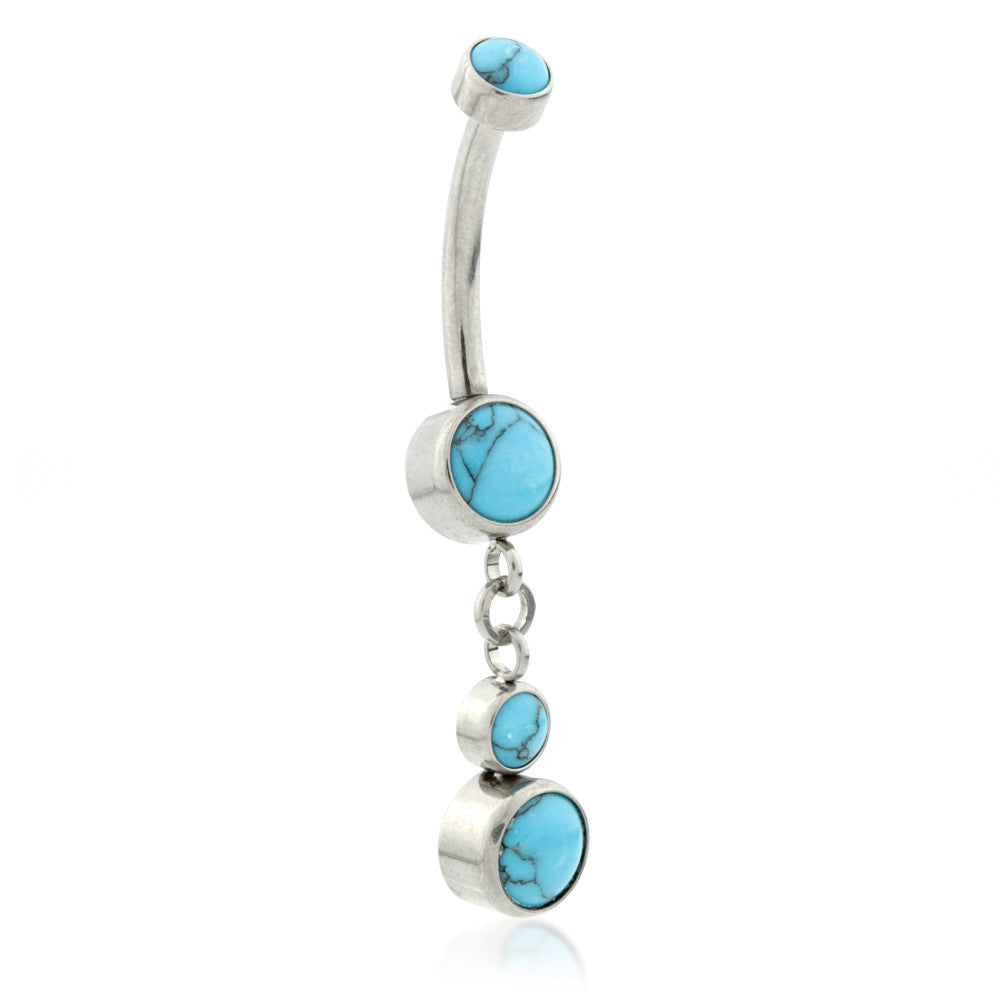 Ti Internal Double Disk Navel With Turquoise Hanging Stones