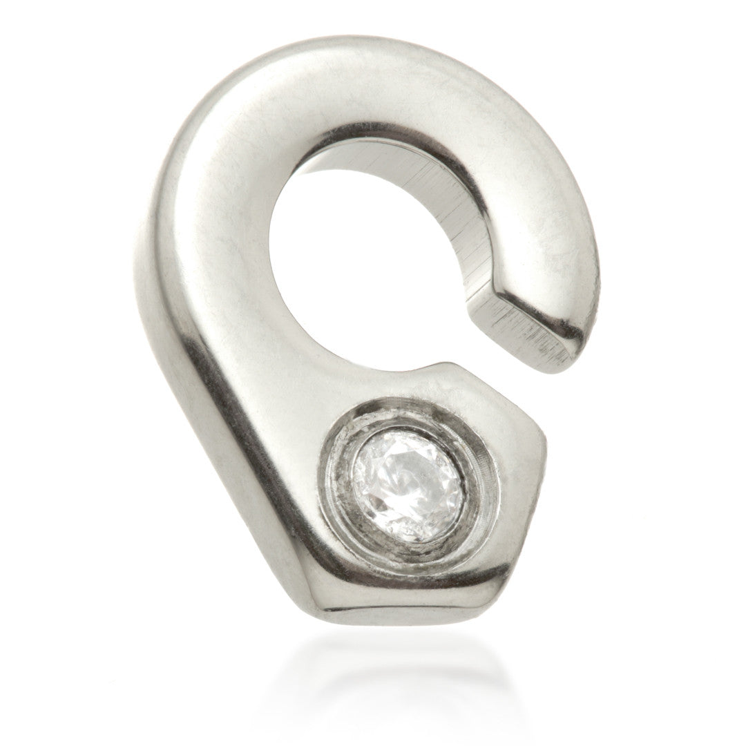 Titanium Internal Handcuff Attachment Gauge: 1.2mm (0.9mm thread) Size: 6mm x 7.5mm Gem Size: 1.5mm Gem Colour: CR CZ Gem Stones Medical Grade Titanium 6Al-4VEli ASTM:F-136