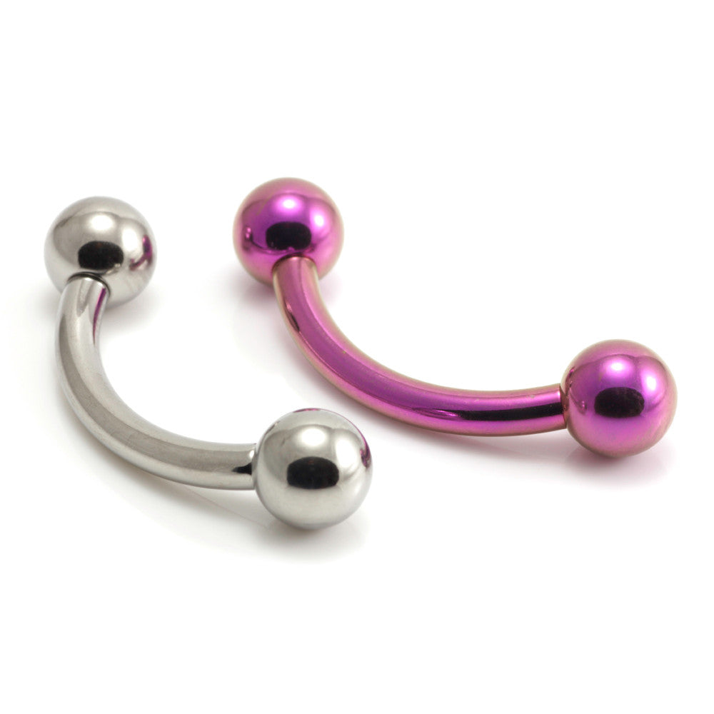 Ti External Thread Curved PA Bar British Handmade and hand mop polished Small stock levels or made to order Gauge: 2.4mm Diameter: 14mm Ball Size: 6mm Medical Grade Titanium 6Al-4VEli ASTM:F-136