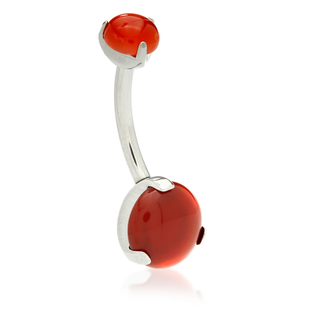 Ti Internal Prong Navel Bar with Red Agate Stone Gauge: 1.6mm Size: 10mm / 12mm Ball Sizes: 8mm + 5mm Medical Grade Titanium 6Al-4VEli ASTM:F-136