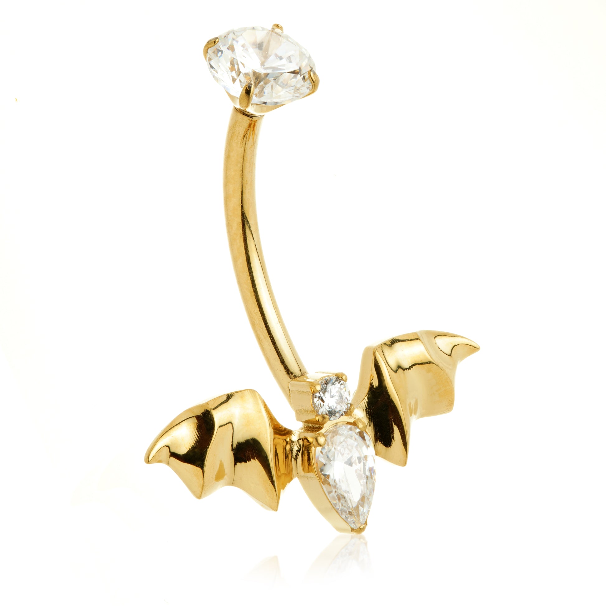 Zircon Gold Ti Internal Jewelled Bat Navel Bar