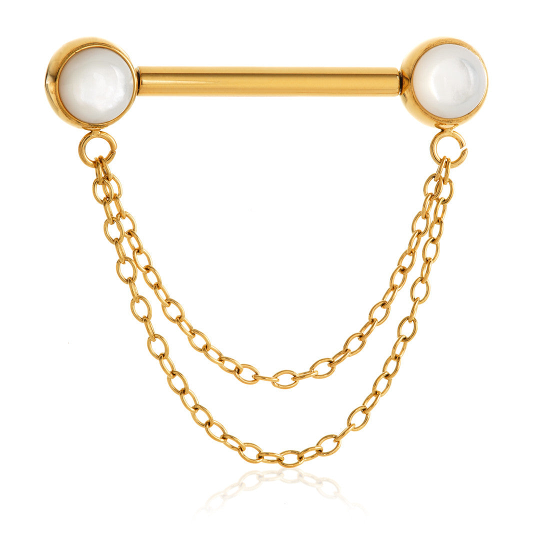 Threadless Zircon Gold Ti Shell Disk Double Chain Nipple Bar