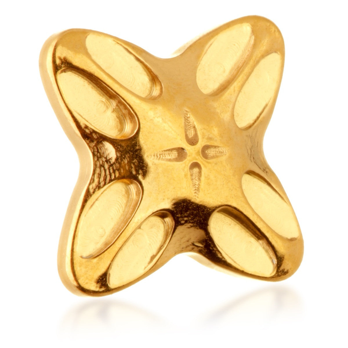 Zircon Gold Titanium Internal Cross Flower Attachment Gauge: 1.2mm (0.9mm thread) Attachment Size: 4.5mm Medical Grade Titanium 6Al-4VEli ASTM:F-136