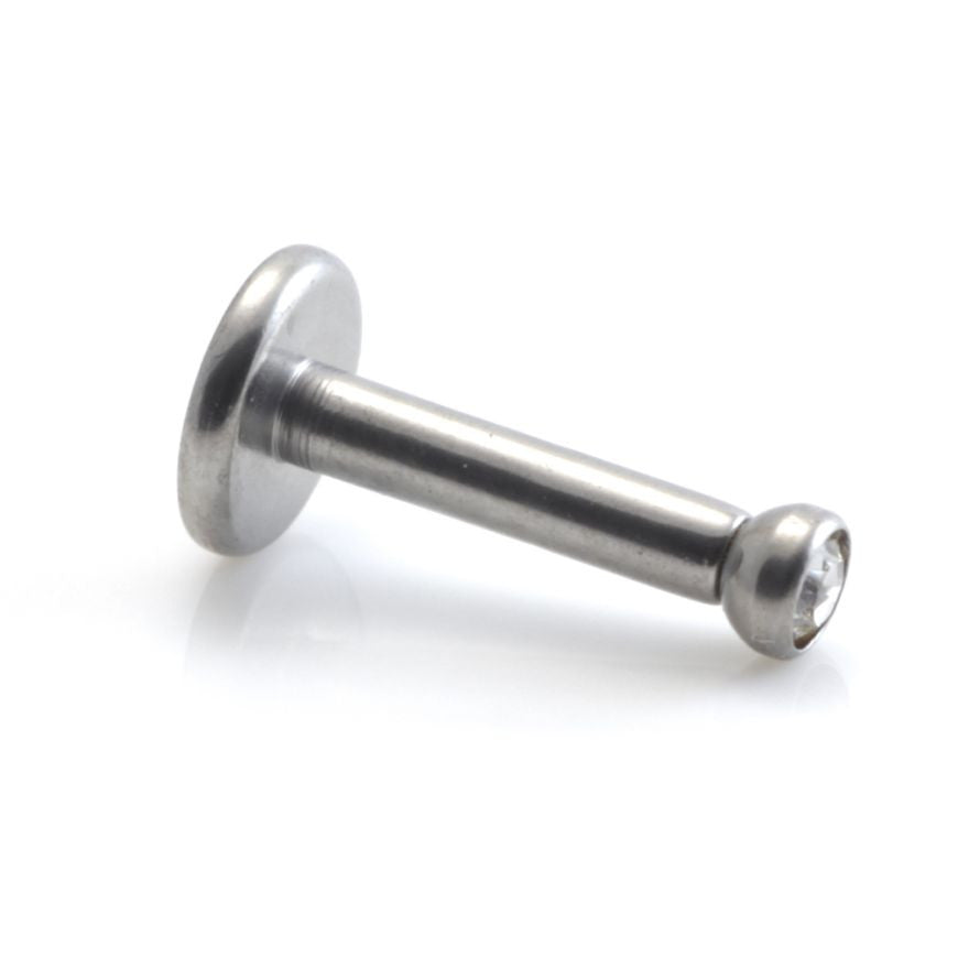 Titanium Micro Labret with Gem Ball Gauge: 1.2mm (thread size: 0.9mm)Labret Size: 8mmAttachment Sizes: 2mm / 2.5mm / 3mm / 4mmGem Colour: CrystalCZ Gem Stones Medical Grade Titanium 6Al-4VEli ASTM:F-136