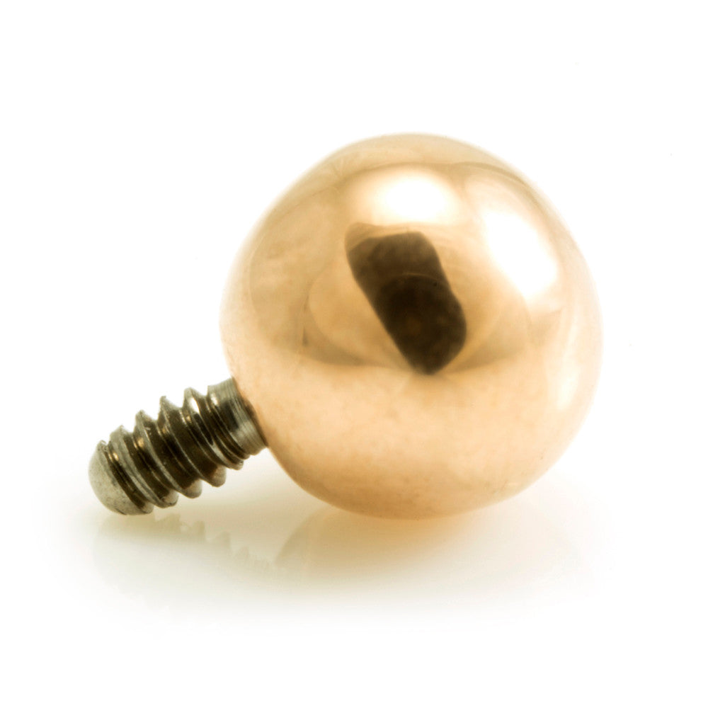 Internal 0.9mm Thread Titanium Rose Gold PVD Ball To fit onto 1.2mm internal thread dermal anchor base or flat surface bars Gauge: 1.2mm Ball Sizes: 2mm, 2.5mm, 3mm, 4mm Medical Grade Titanium 6Al-4VEli ASTM:F-136