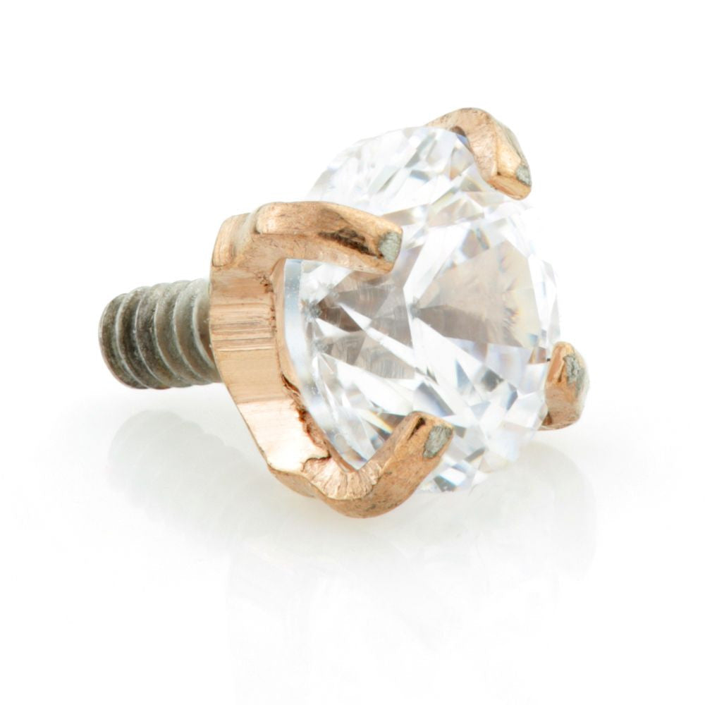 Rose Gold Ti Prong Set Gem Gauge: 1.2mm with 0.9mm thread Gem Sizes: 2mm, 2.5mm, 3mm Gem Colour: Crystal Medical Grade Titanium 6Al-4VEli ASTM:F-136