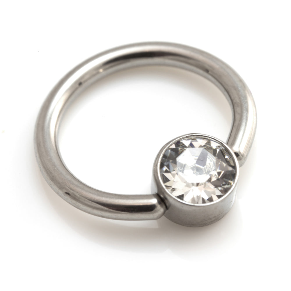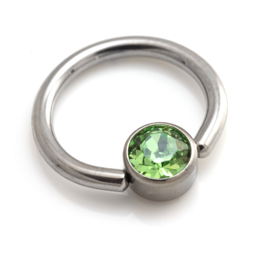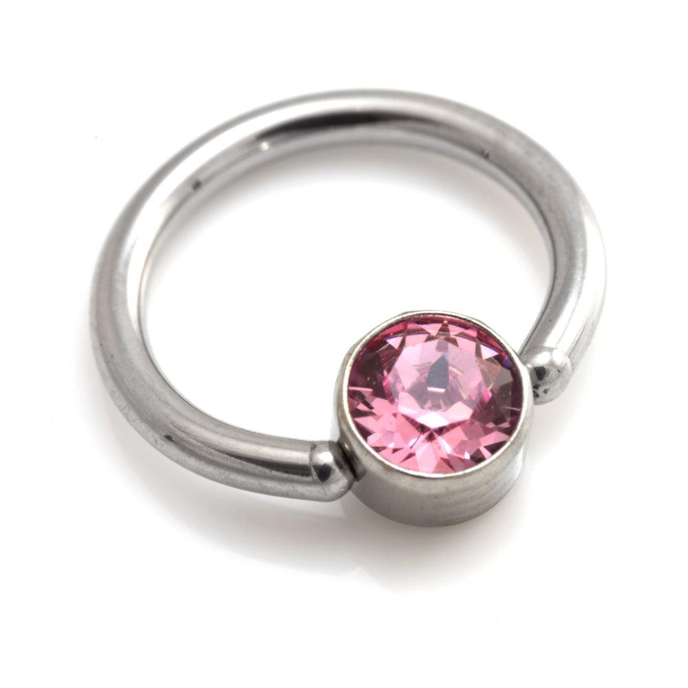 316L Surgical Steel BCR with Flat Gem Disk Gauge: 1.2mm Size: 8mm Disk Size: 3mm or 4mm Gem Colours: Crystal, AB, Aqua, Lt Rose, Peridot, Lt Siam, Sapphire, Jet, BZ, Fuchsia, Purple Violet Swarovski Crystal Gem Stones