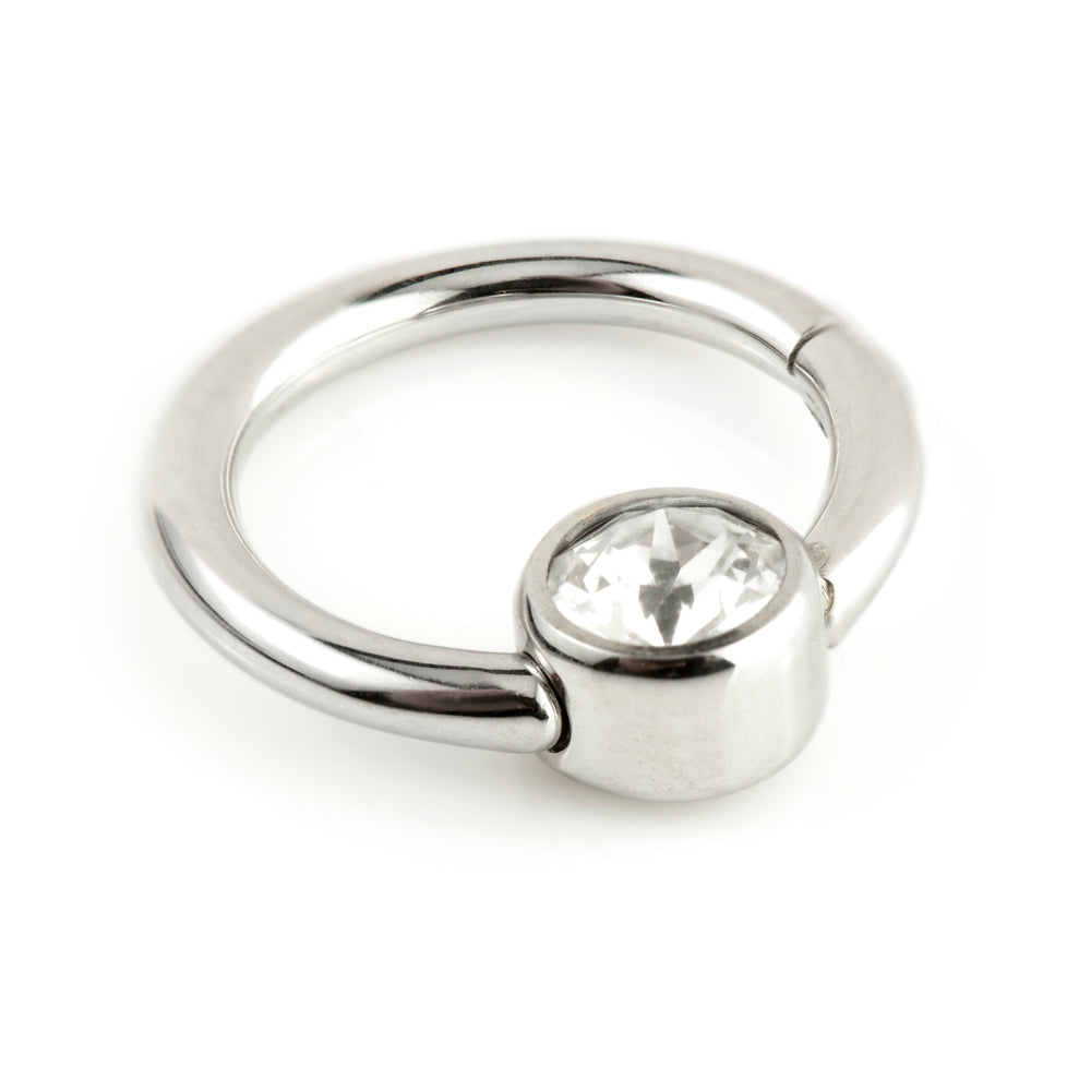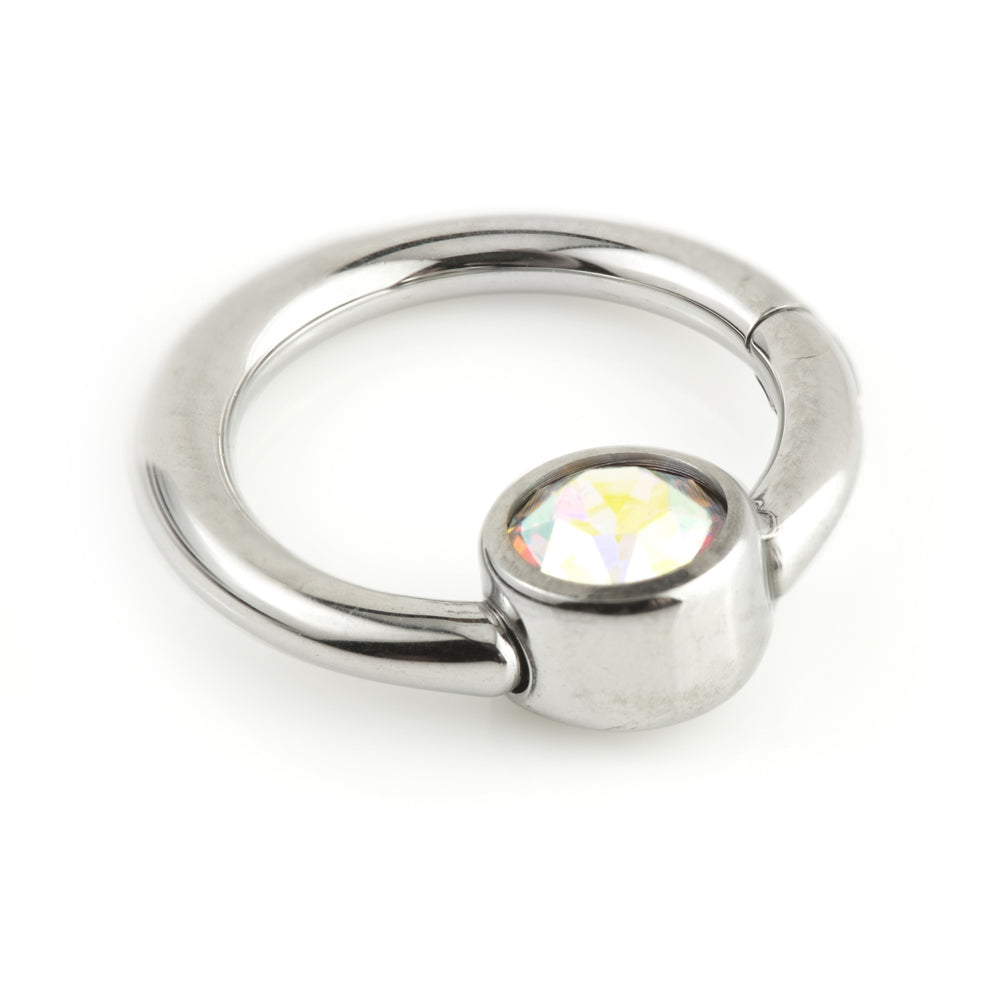 316L Surgical Steel Hinge Smiley Ring Gauge: 1.2mm Size: 8mm Gem Disk Size: 4mm Gem Colour: Crystal, AB, Lt Rose, Aqua
